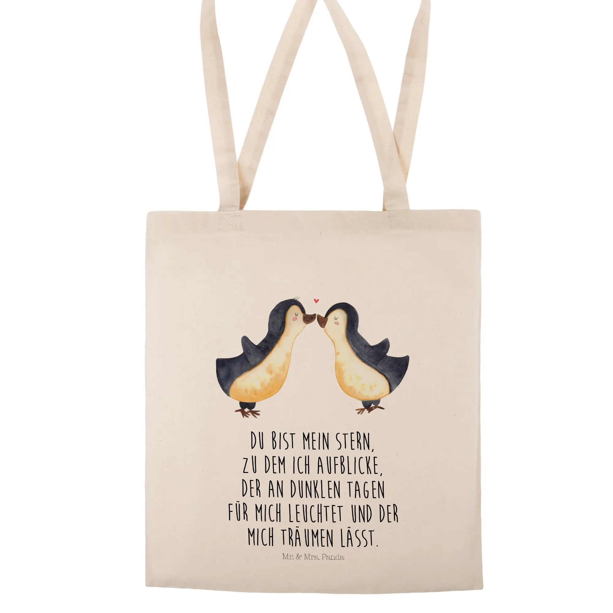 Die Tragetasche "Pinguin Liebe" von Mr. & Mrs. Panda ist das perfekte Geschenk für alle Liebenden! Egal ob zum Jahrestag, Valentinstag oder einfach als süße Aufmerksamkeit für deinen Partner – mit dieser bezaubernden Tasche zeigst du deine Zuneigung auf eine besondere Art und Weise.