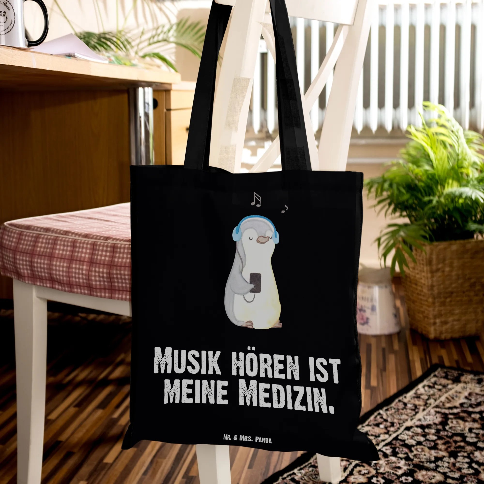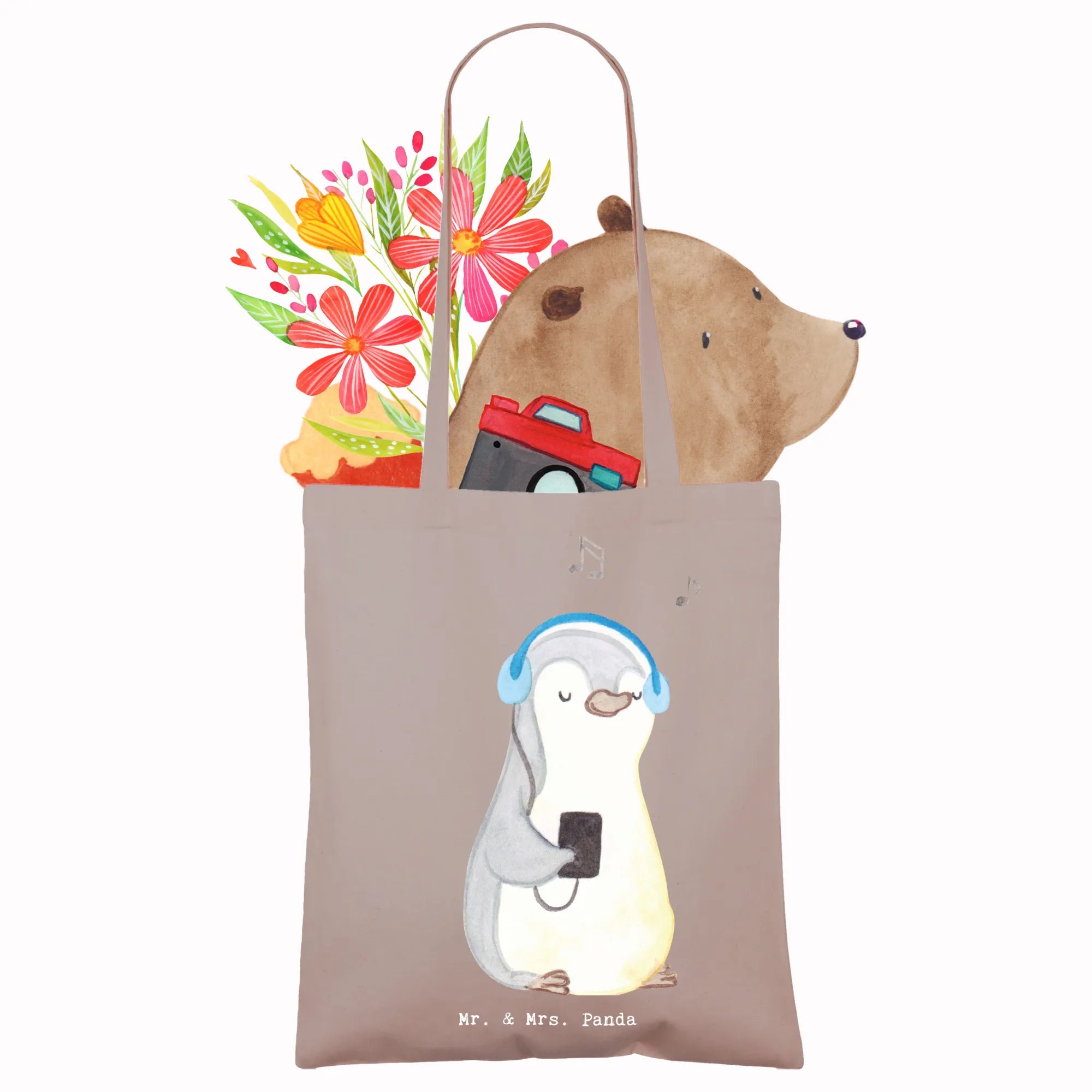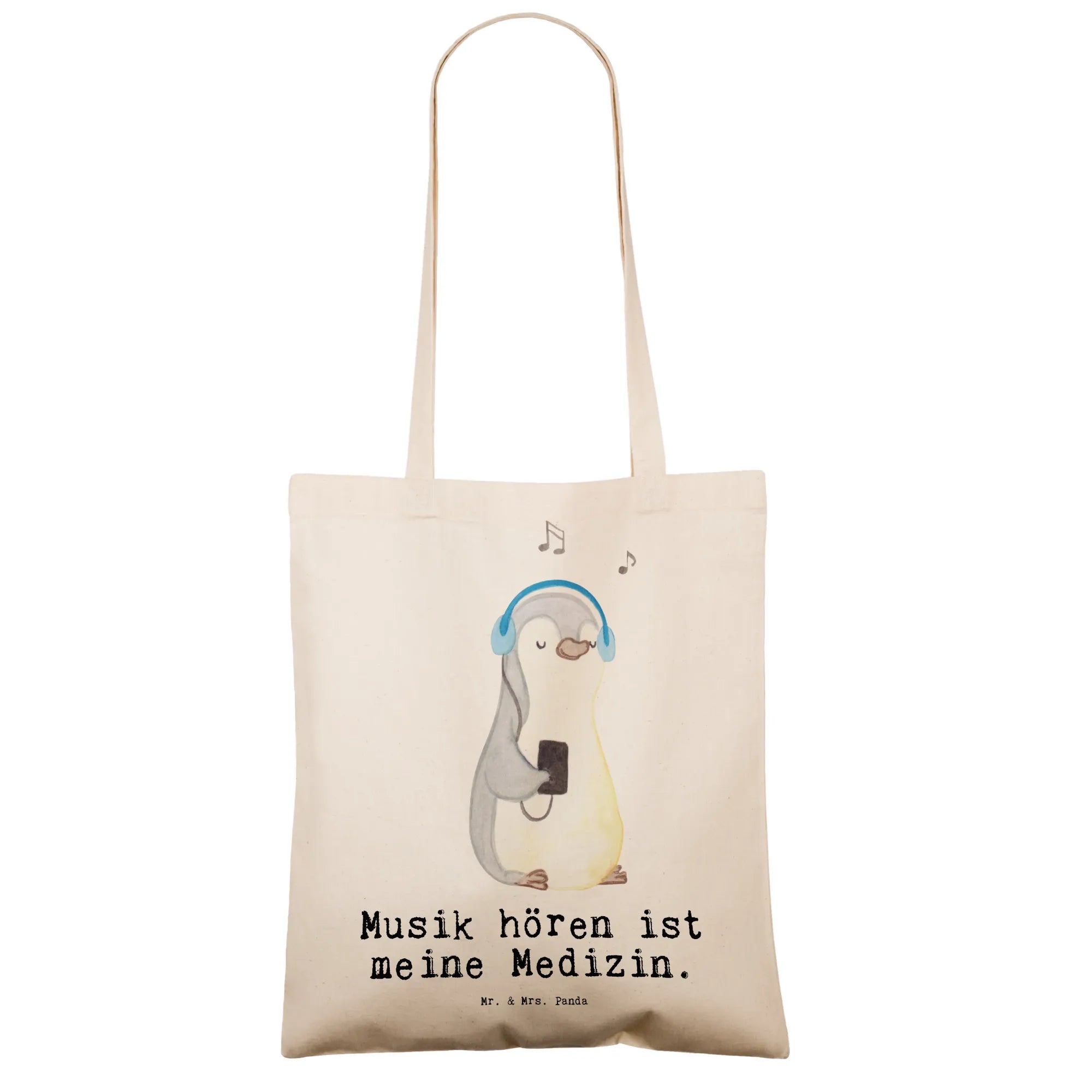 Tragetasche Pinguin Musik hören - mit Spruch - Transparent