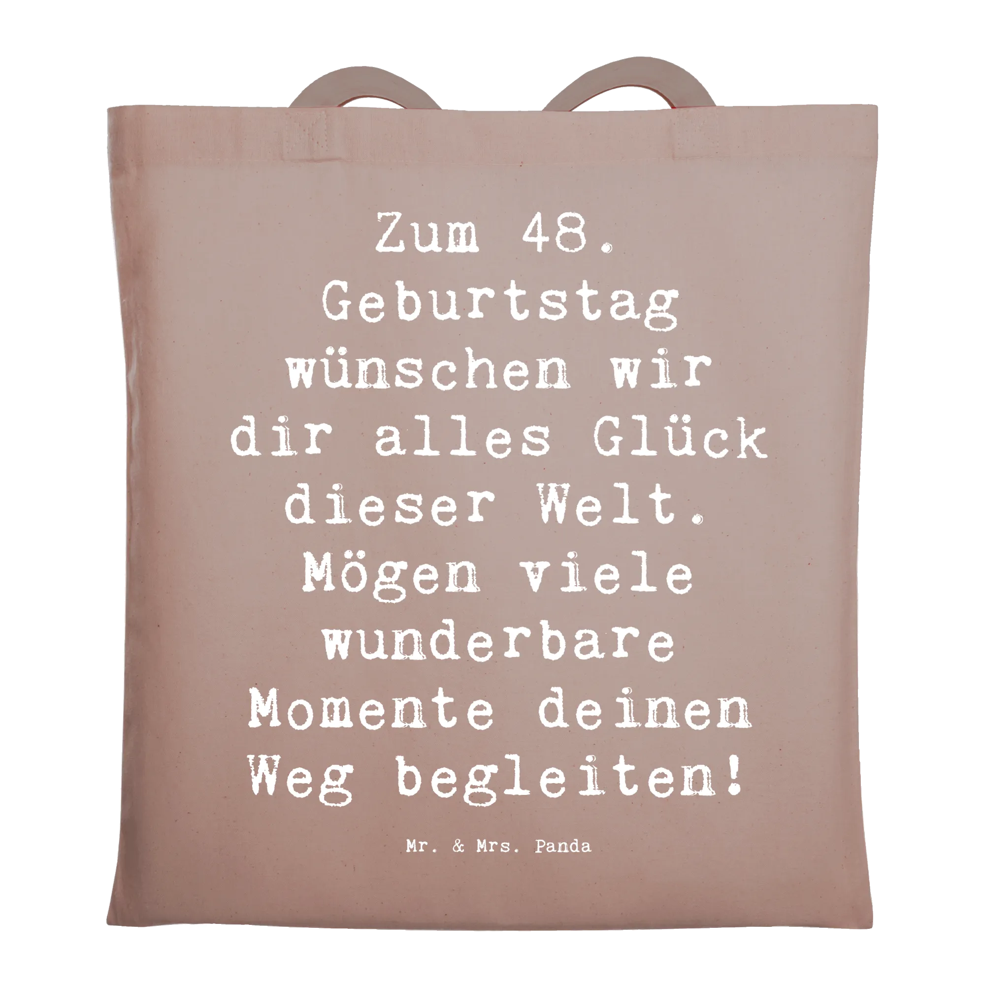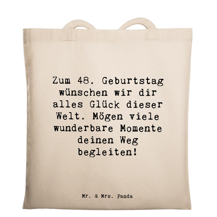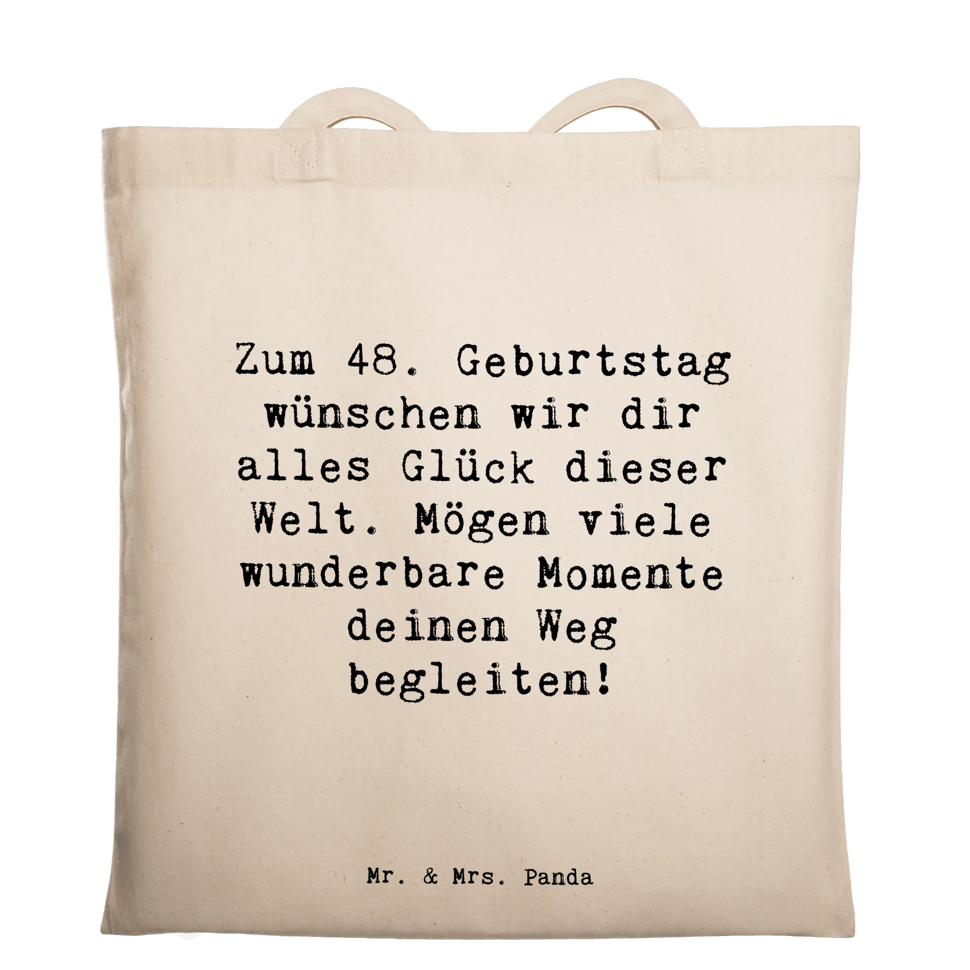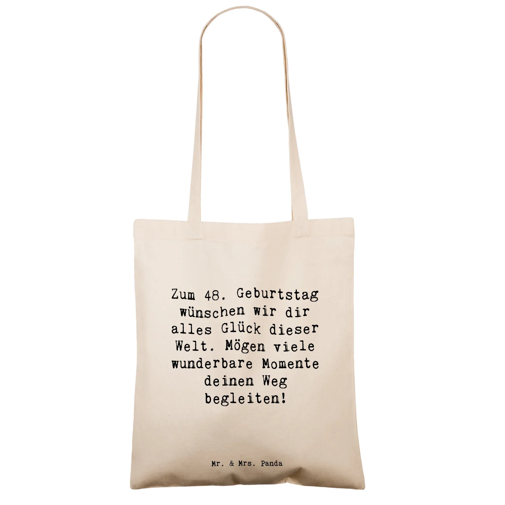Die wunderschöne Tragetasche von Mr. & Mrs. Panda ist das perfekte Geschenk für alle, die ihren 48. Geburtstag feiern! Diese zauberhafte Tasche kommt mit dem liebevollen Slogan: 'Zum 48. Geburtstag wünschen wir dir alles Glück dieser Welt. Mögen viele wunderbare Momente deinen Weg begleiten!'