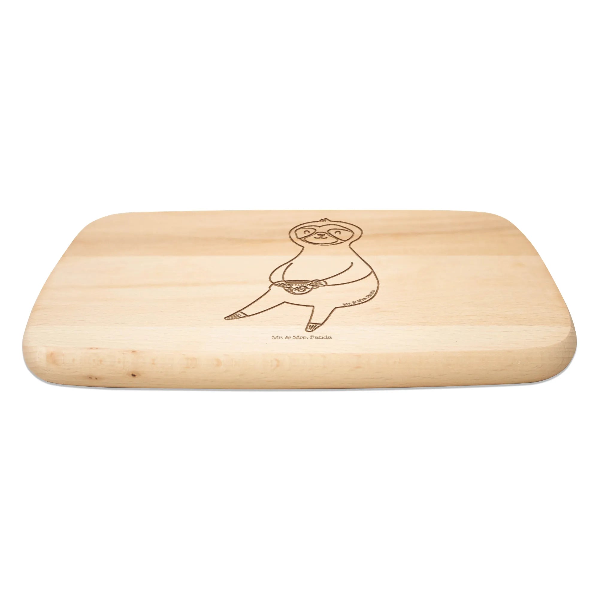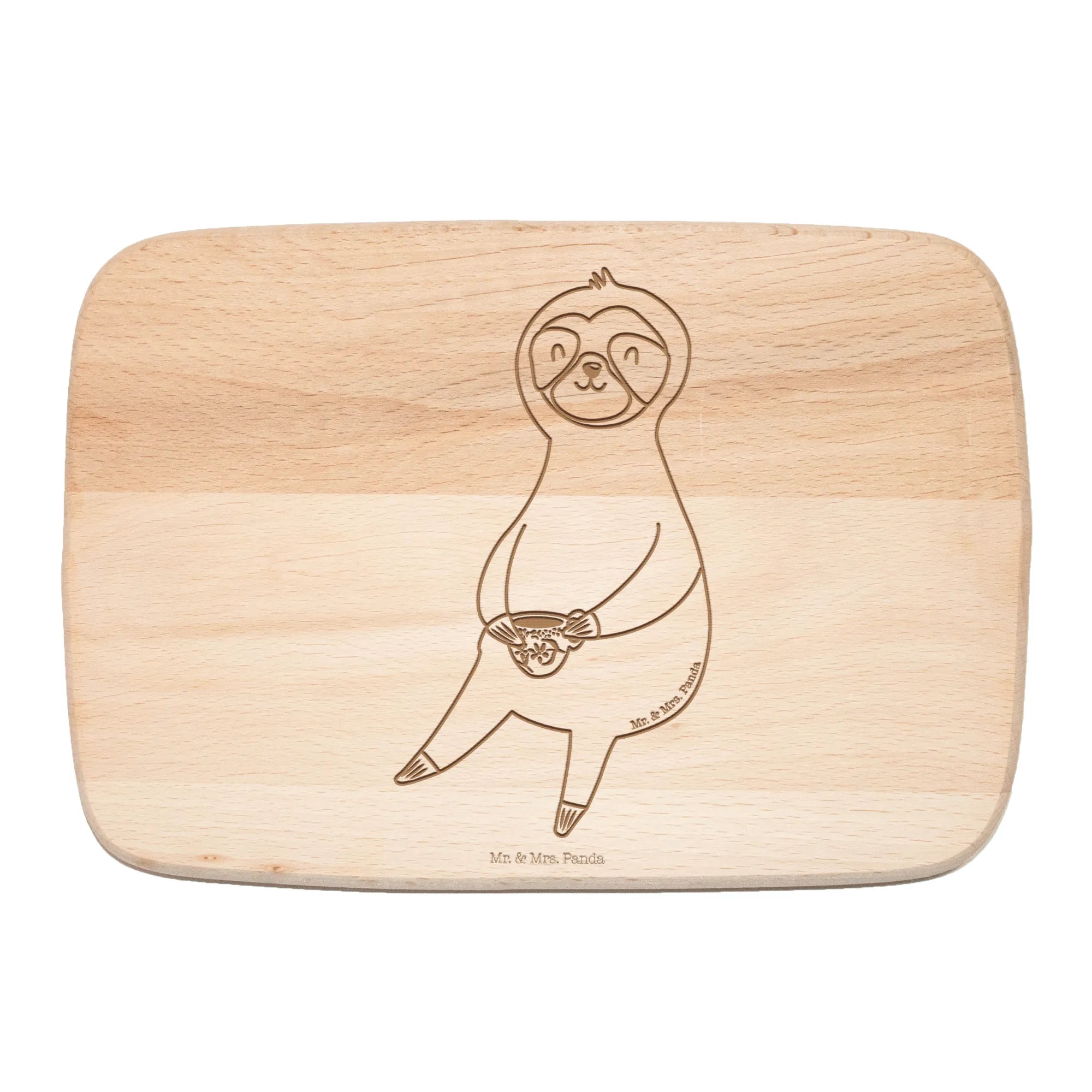Das Frühstücksbrett Faultier Kaffee von Mr. & Mrs. Panda ist der perfekte Begleiter für alle, die ihren Morgen mit einem Lächeln beginnen möchten. Hergestellt aus robustem und hochwertigem FSC-zertifiziertem Buchenholz, bietet dieses einzigartige und edle Frühstücksbrett nicht nur eine praktische Oberfläche zum Schneiden und Servieren, sondern auch ein liebevoll handgezeichnetes Motiv.