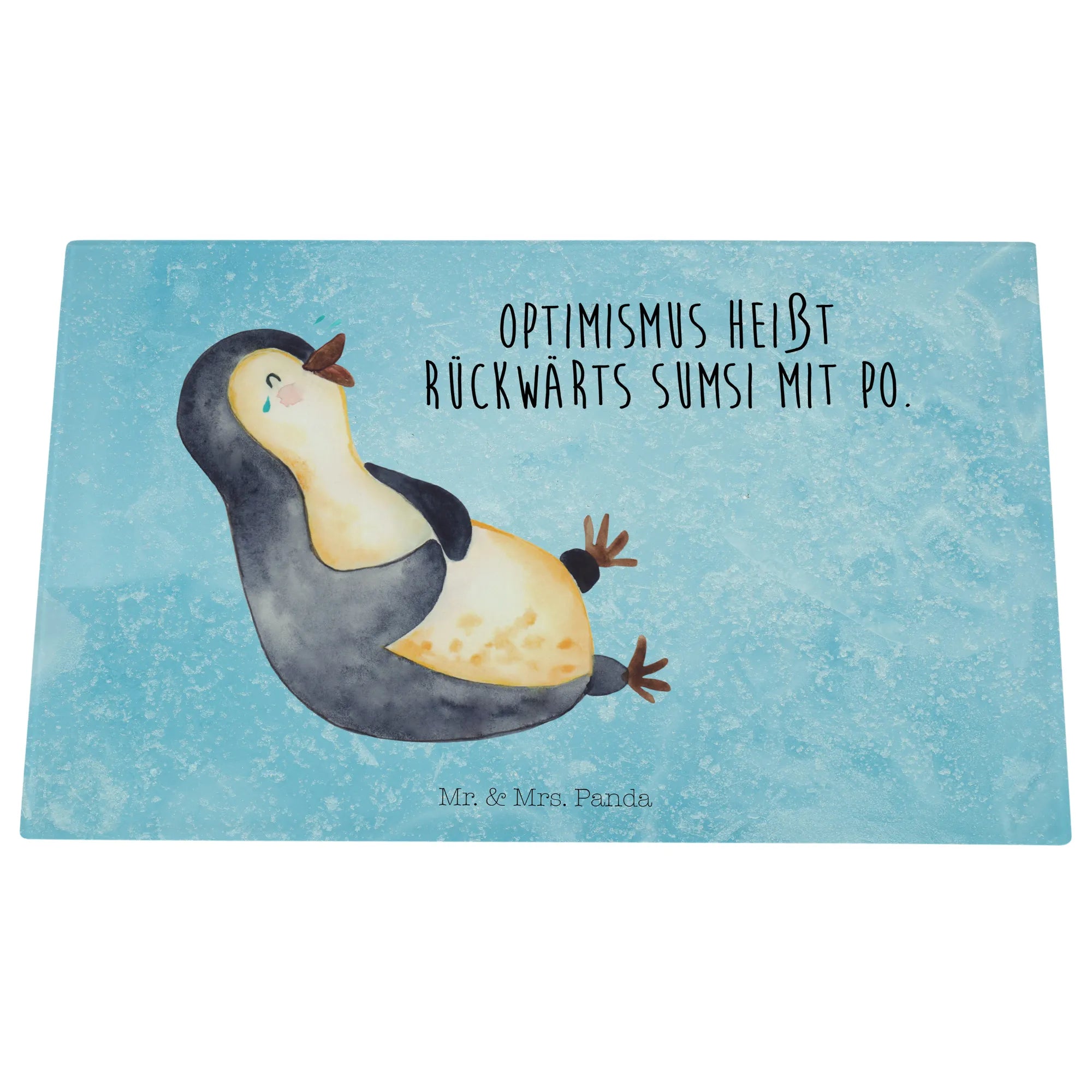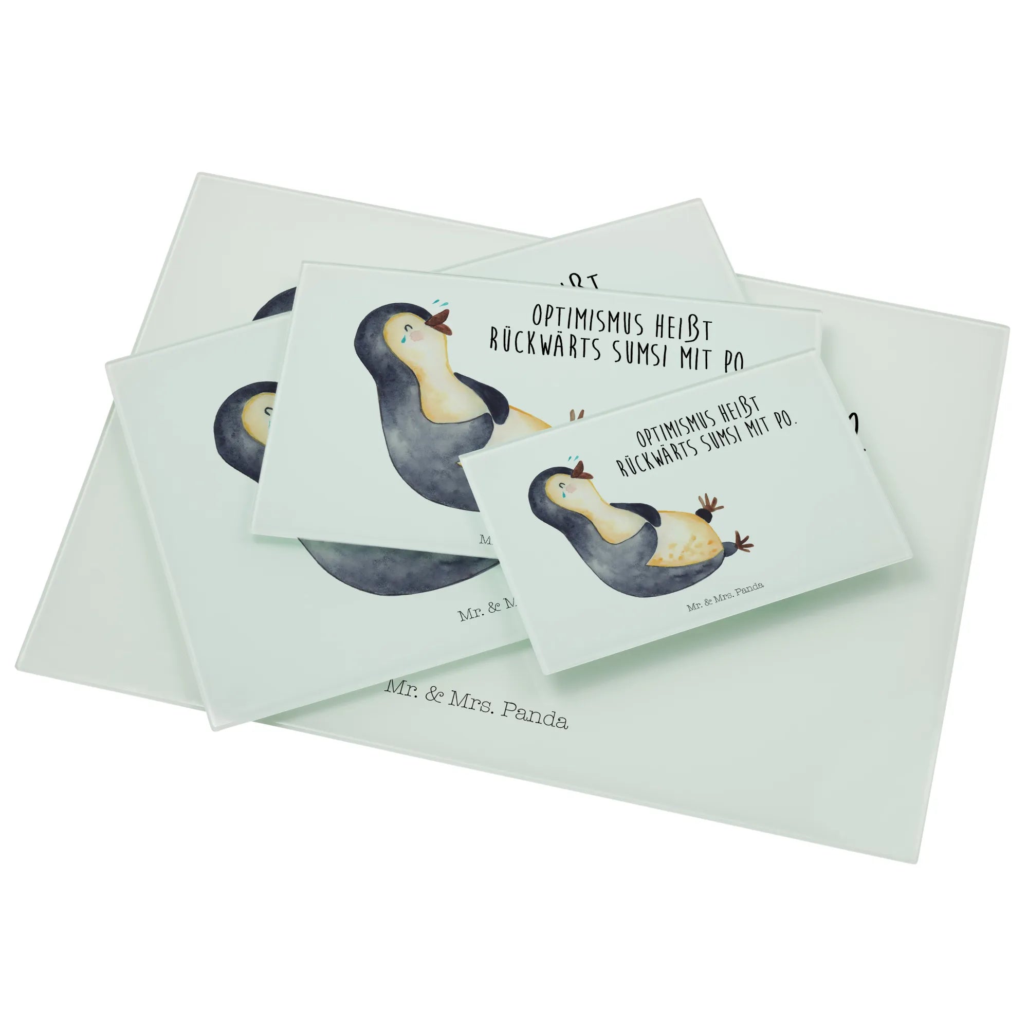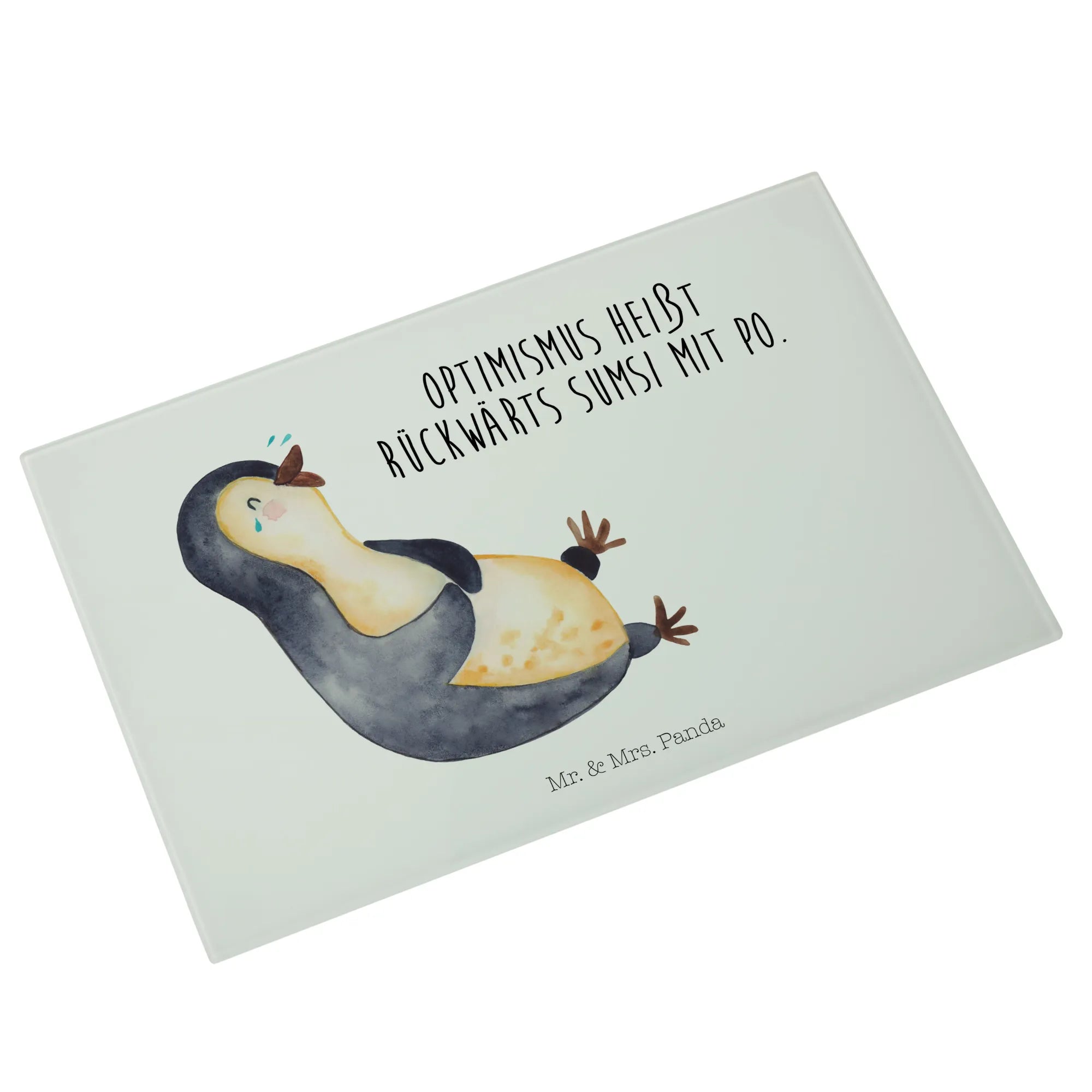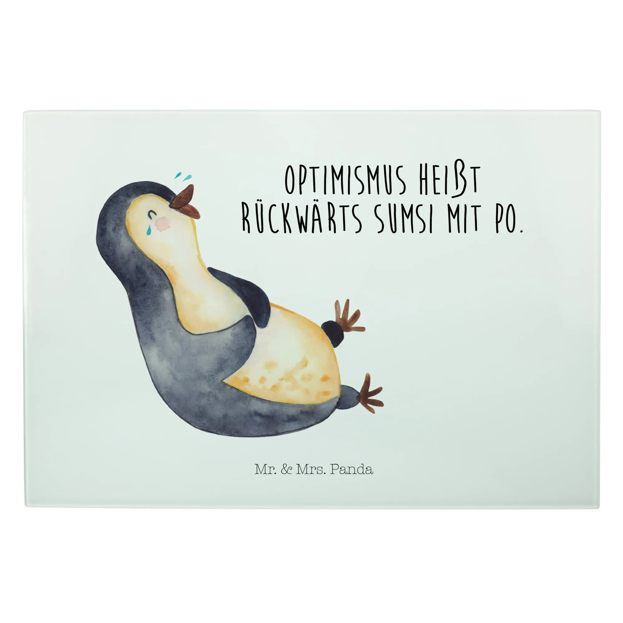 Das medium Glas Schneidbrett mit dem lustigen Pinguin-Motiv von Mr. & Mrs. Panda ist das perfekte Geschenk für alle, die das Leben mit einem Lächeln betrachten. Mit seiner Größe von 284 mm x 200 mm ist es nicht nur praktisch, sondern auch ein echter Hingucker in jeder Küche. Der lachende Pinguin auf dem Brettchen erinnert uns daran, die Dinge nicht zu ernst zu nehmen und täglich das Leben zu feiern. Mit dem Slogan 'Optimismus heißt rückwärts Sumsi mit Po.' zaubert das Brett jedem ein Lächeln ins Gesicht.