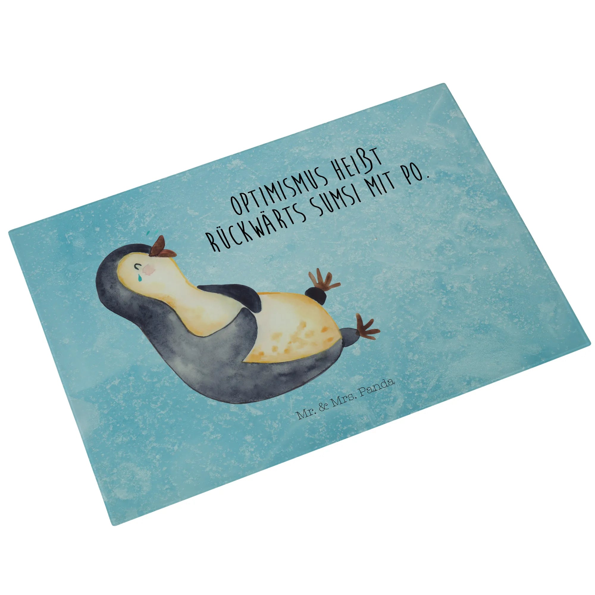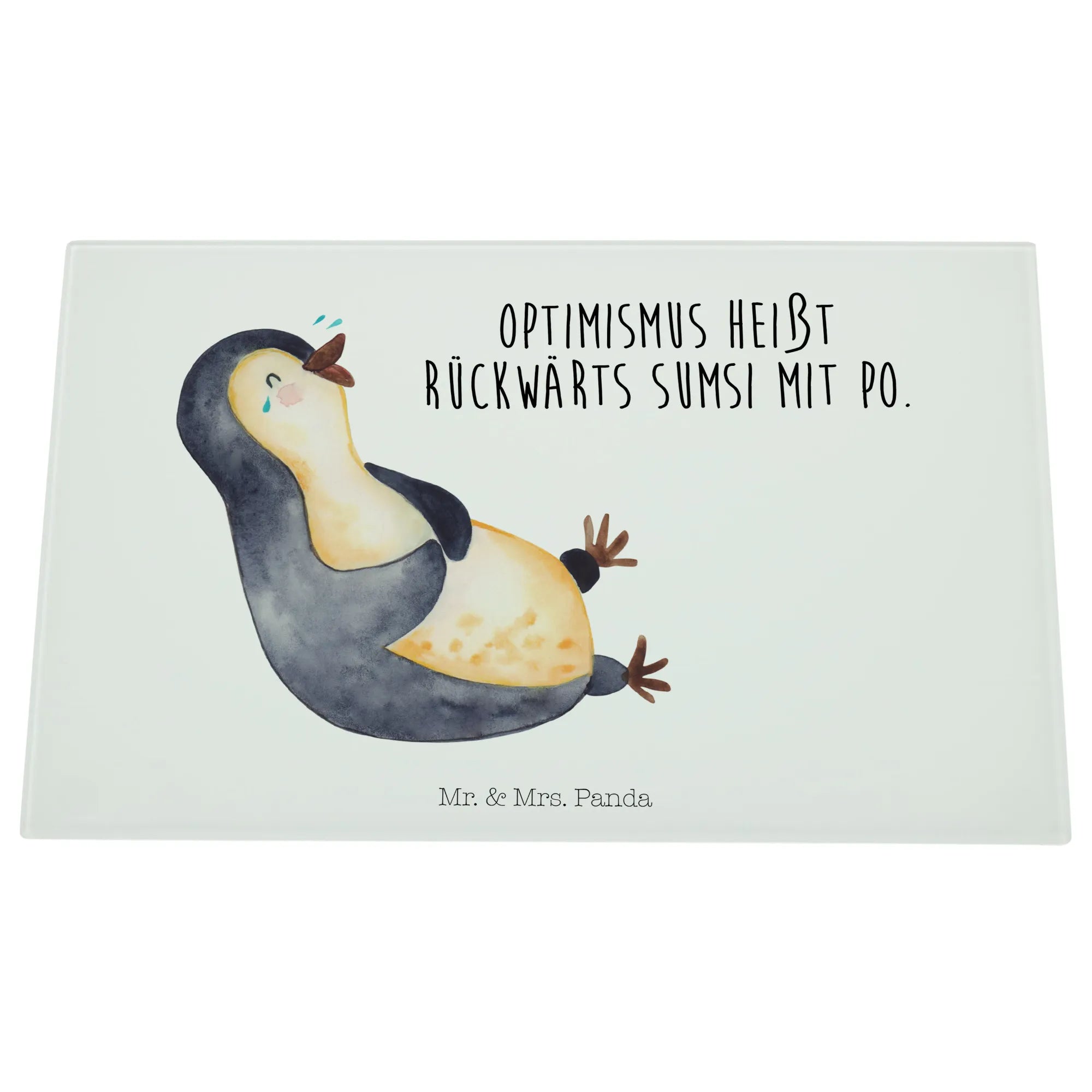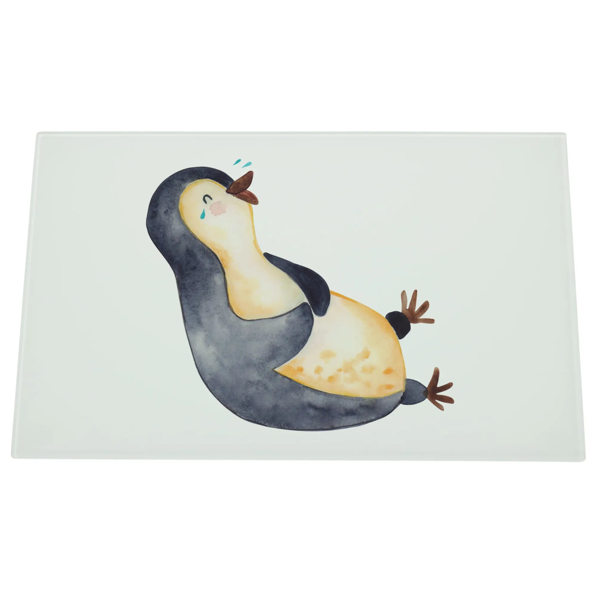 Entdecke das perfekte Geschenk für jeden Pinguinliebhaber: das XL Glas Schneidbrett mit dem fröhlichen, lachenden Pinguin-Motiv aus der Pinguin-Kollektion von Mr. & Mrs. Panda!