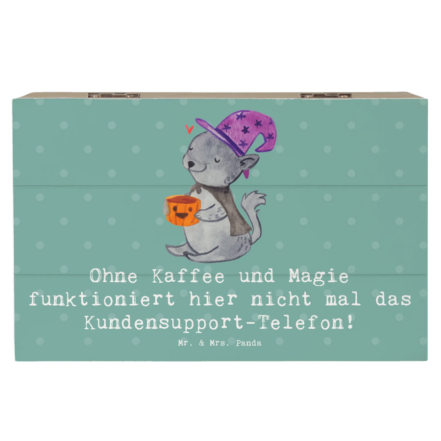 Entdecke die zauberhafte Holzkiste, die perfekt für alle Kundensupporterinnen ist! Diese wunderschöne Erinnerungskiste von Mr. & Mrs. Panda bringt nicht nur Farbe, sondern auch eine große Portion Herz in jeden Büroalltag. Ihr liebevoll gestaltetes Motiv mit dem Spruch "Ohne Kaffee und Magie funktioniert hier nicht mal das Kundensupport-Telefon!" ist ein echter Hingucker und zaubert ein Lächeln auf jedes Gesicht.