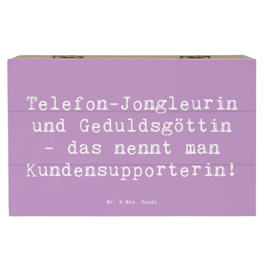 Die wunderschöne Holzkiste von Mr. & Mrs. Panda ist ein echtes Must-Have für alle Kundensupporterinnen da draußen! Bedruckt mit dem lustigen Spruch "Telefon-Jongleurin und Geduldsgöttin - das nennt man Kundensupporterin!", strahlt diese Kiste nicht nur Charme, sondern auch Wertschätzung aus.