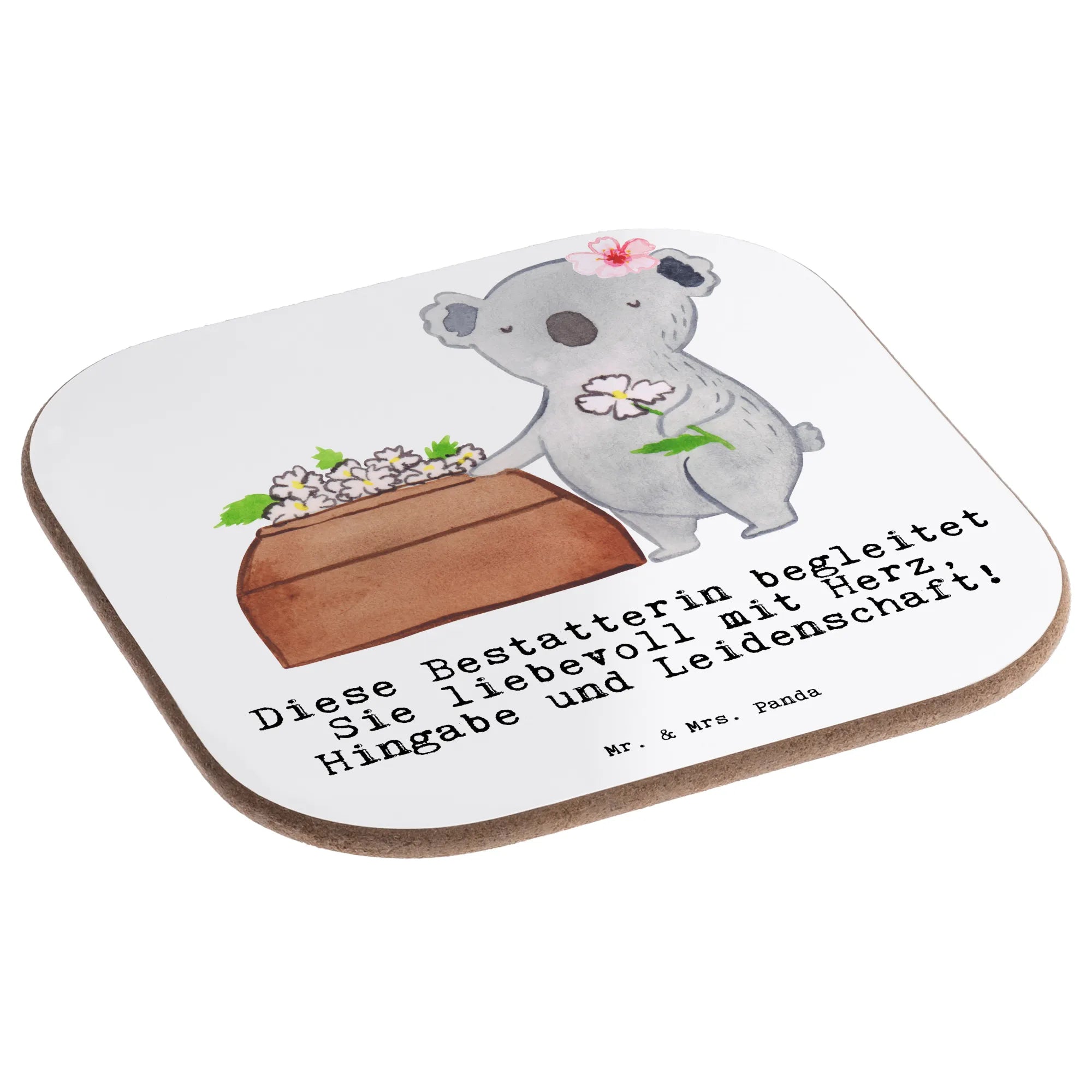Quadratische Untersetzer Bestatterin mit Herz