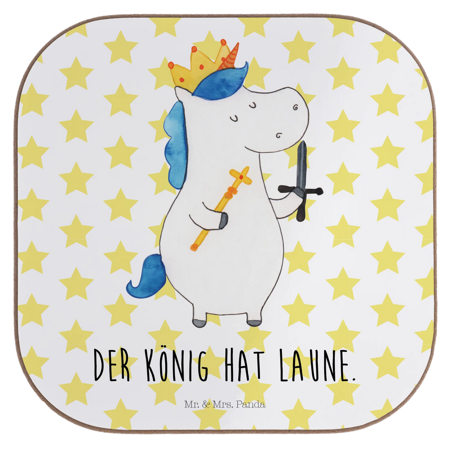 Du suchst nach dem perfekten Geschenk für Freunde, Familie oder einfach für dich selbst? Dann ist der wunderschöne Untersetzer "Einhorn König mit Schwert" aus der Einhorn-Kollektion von Mr. & Mrs. Panda genau das Richtige! Mit dem strahlenden Motiv eines süßen Einhorns, einem majestätischen König mit einer Krone und einem funkelnden Schwert in der Hand, bringt dieser Untersetzer eine Prise Magie in dein Zuhause.
