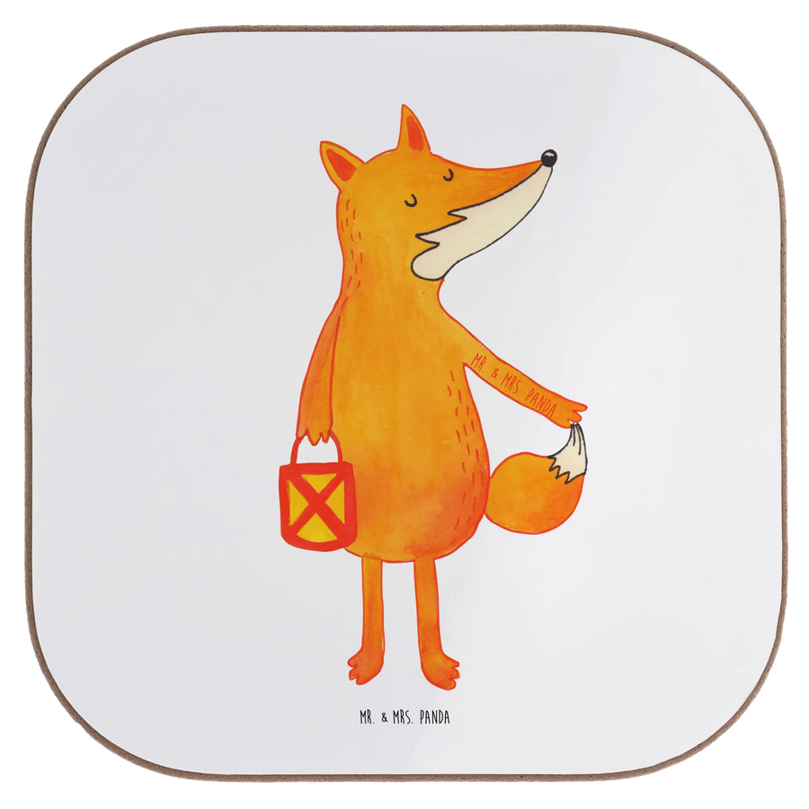 Quadratische Untersetzer Fuchs Laterne - ohne Spruch - Weiß