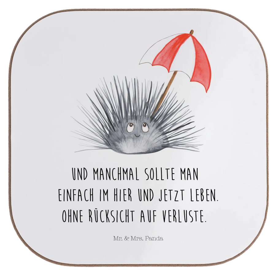Entdecke den perfekten Untersetzer für dein Zuhause – das quadratische Design aus der Meerestiere Kollektion von Mr. & Mrs. Panda! Dieser wunderschöne Untersetzer zeigt einen niedlichen Seeigel, der mit seinem freundlichen Gesicht und dem roten, gestreiften Schirm sofort gute Laune verbreitet.