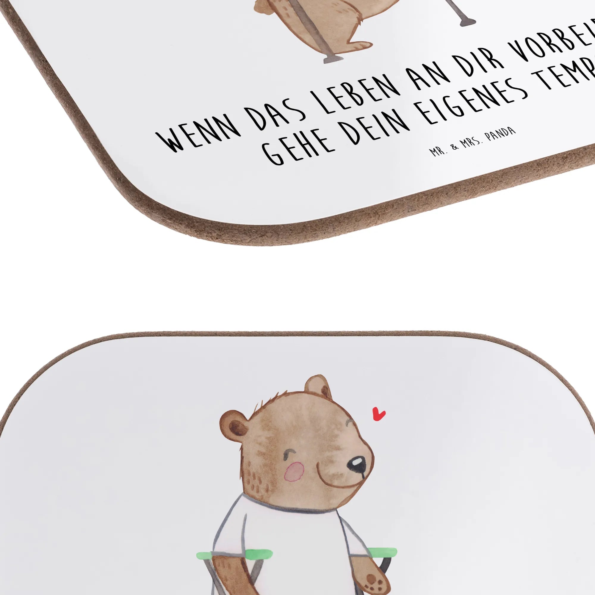 Entdecke die herzerwärmende Geschichte von Bruno Bellissimo, dem tapferen Bär, der uns lehrt, dass wir mehr sind als unser Körper. Nach seiner Beinamputation zeigt Bruno, dass wahre Stärke von innen kommt. Mit einem Lächeln und unerschütterlichem Mut geht er seinen eigenen Weg, inspiriert von der Überzeugung, dass auch im Angesicht von Herausforderungen das Leben wunderschön sein kann. Dieses Motiv ist eine Liebeserklärung an alle, die trotz körperlicher und psychischer Handicaps ihr Leben mit Leichtigkeit und Freude gestalten. Mr. & Mrs. Panda ehren mit Bruno Bellissimo die unerschütterliche Kraft und den unermüdlichen Optimismus, die jedem von uns innewohnen. 'Wenn das Leben an dir vorbeirast, gehe dein eigenes Tempo.'
