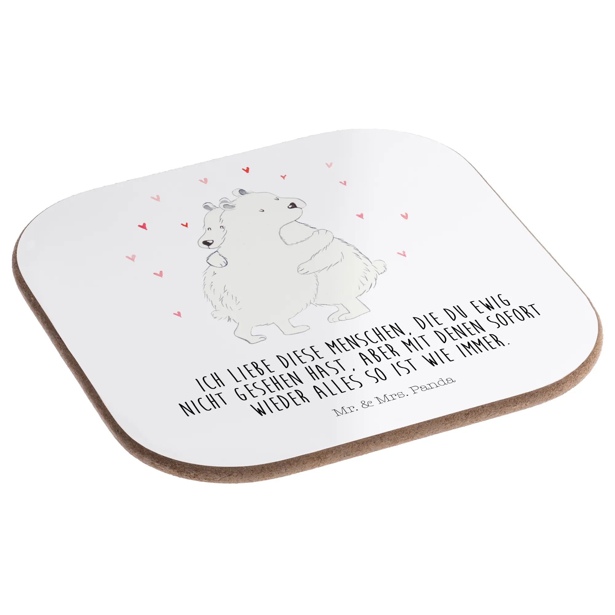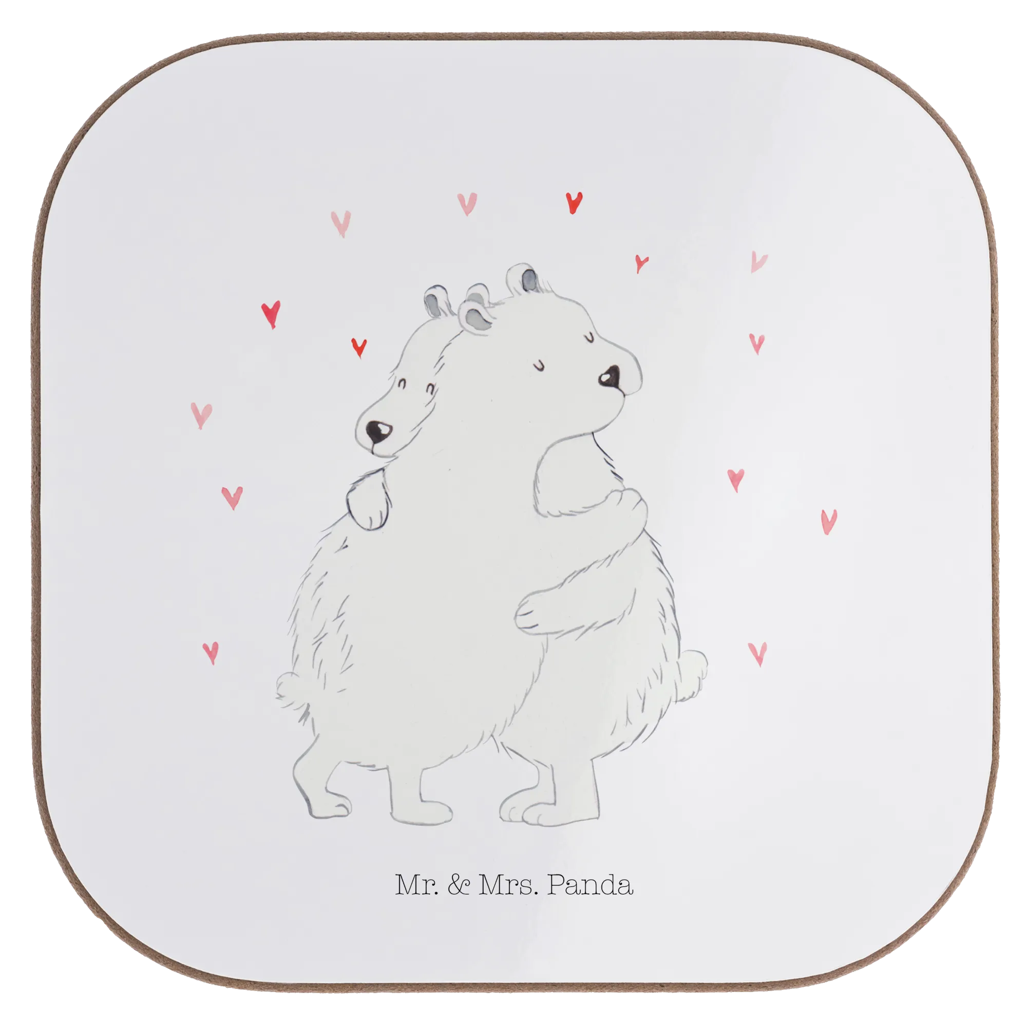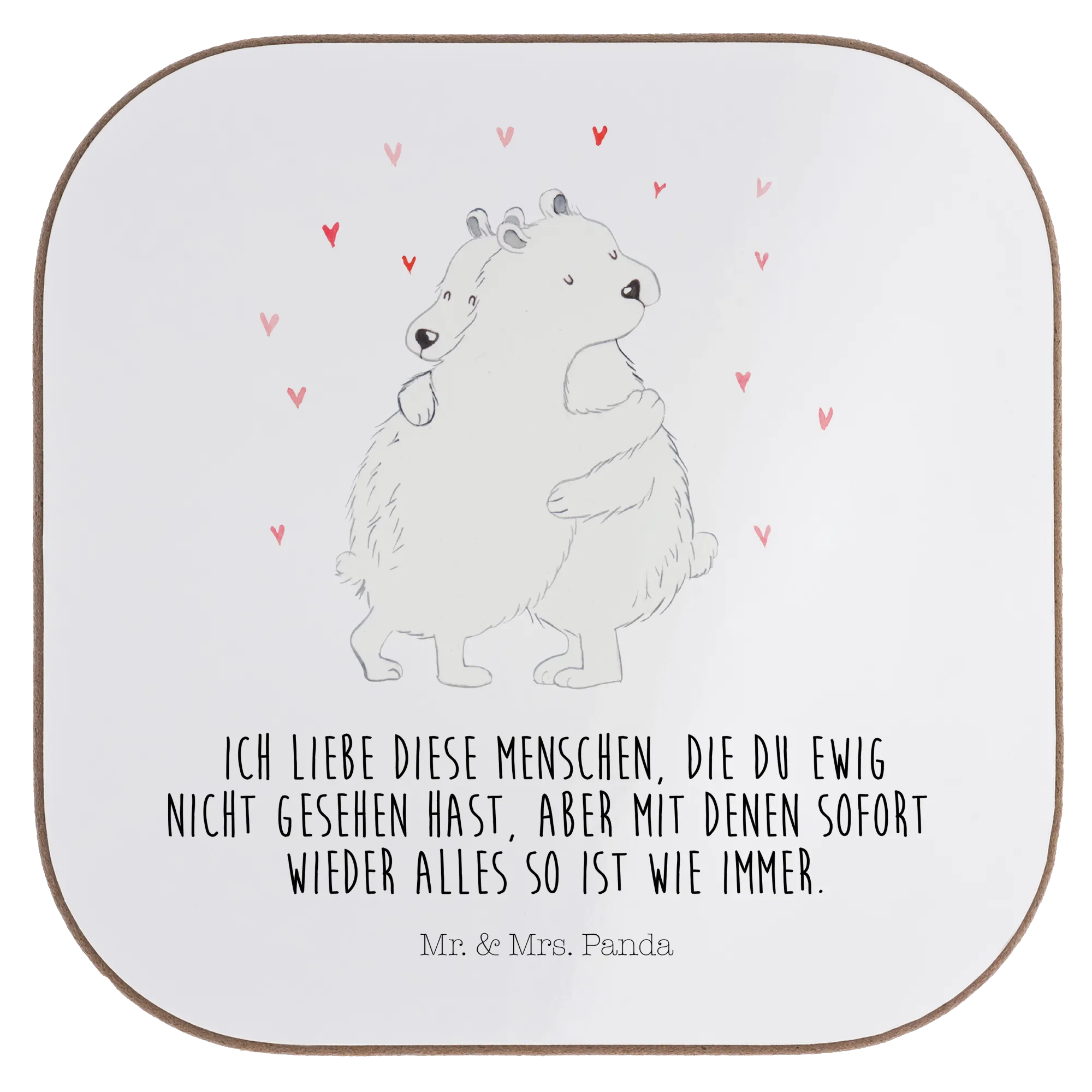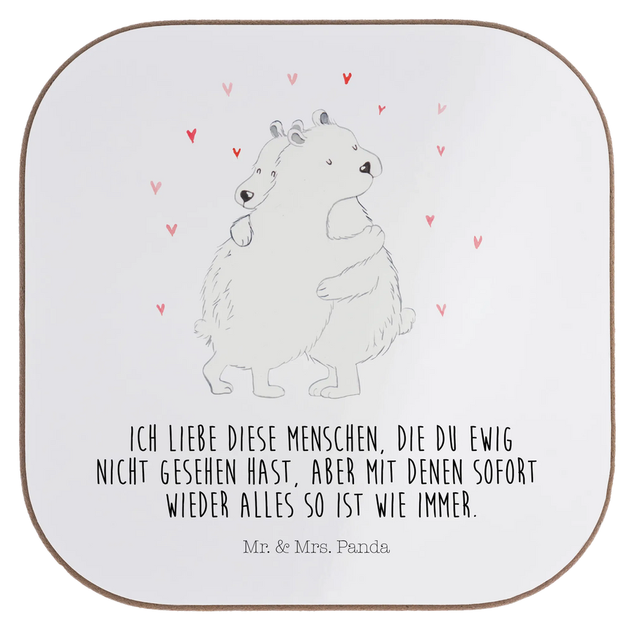 Quadratische Untersetzer Eisbär Umarmen - mit Spruch