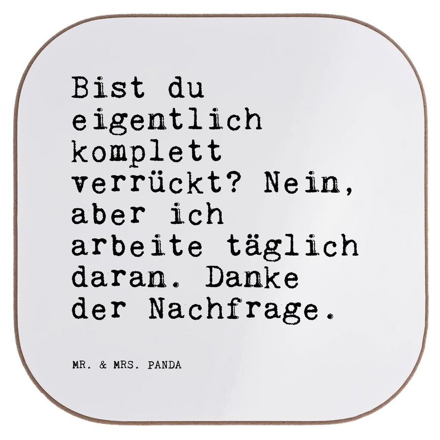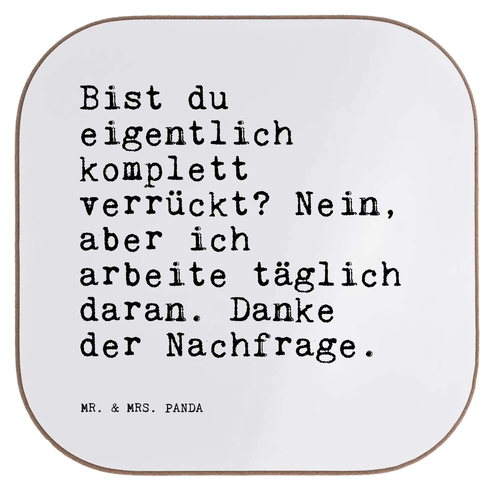 Quadratische Untersetzer Sprüche und Zitate Bist du eigentlich komplett verrückt? Nein, aber ich arbeite täglich daran. Danke der Nachfrage. - Weiß