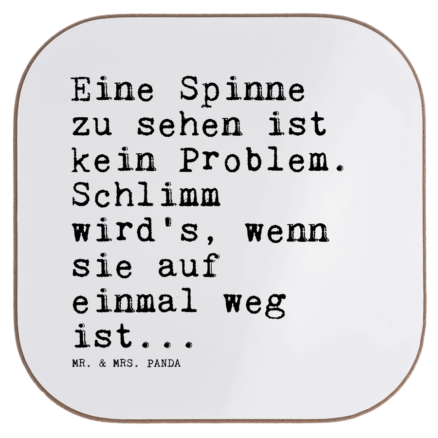 Quadratische Untersetzer Sprüche und Zitate Eine Spinne zu sehen ist kein Problem. Schlimm wird's, wenn sie auf einmal weg ist... - Weiß