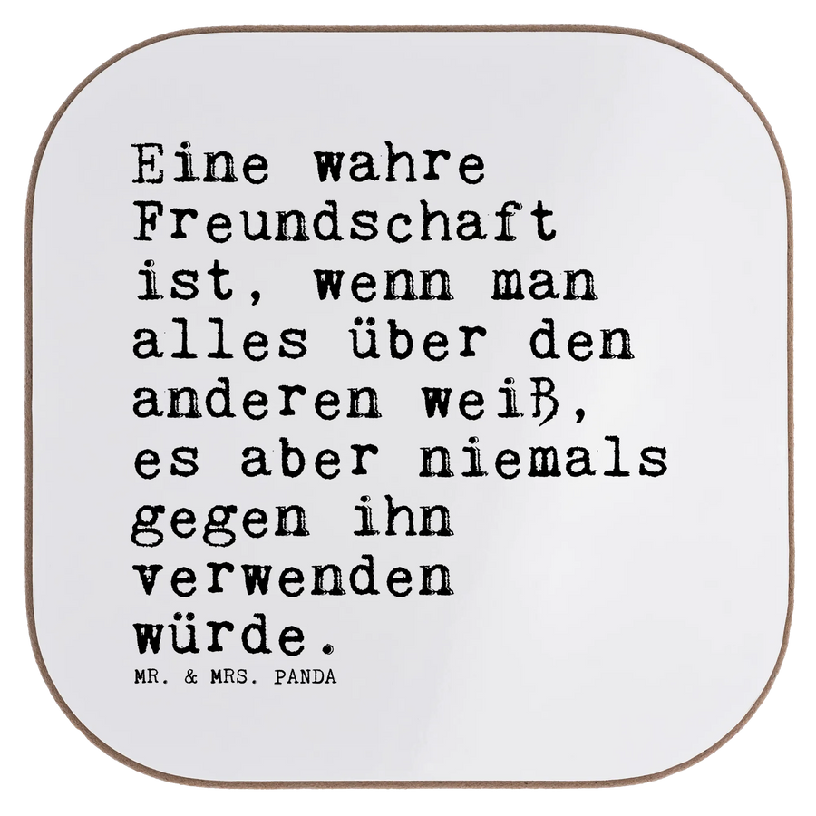 Quadratische Untersetzer Sprüche und Zitate Eine wahre Freundschaft ist, wenn man alles über den anderen weiß, es aber niemals gegen ihn verwenden würde. - Weiß