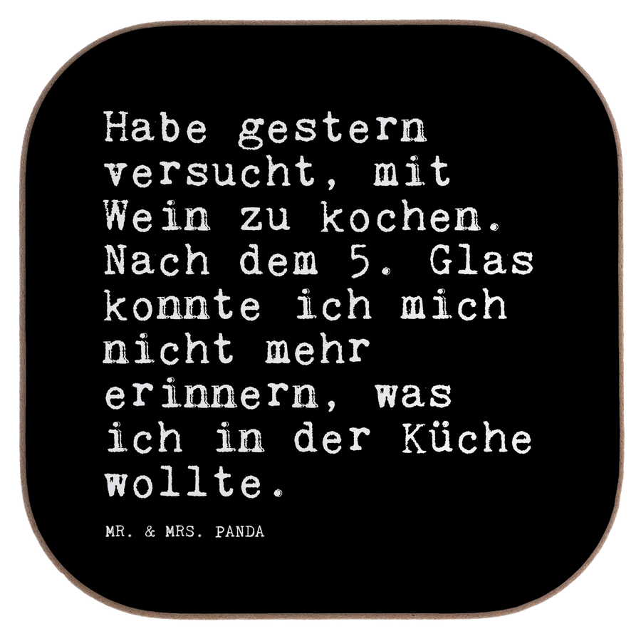 Quadratische Untersetzer Sprüche und Zitate Habe gestern versucht, mit Wein zu kochen. Nach dem 5. Glas konnte ich mich nicht mehr erinnern, was ich in der Küche wollte. - Schwarz