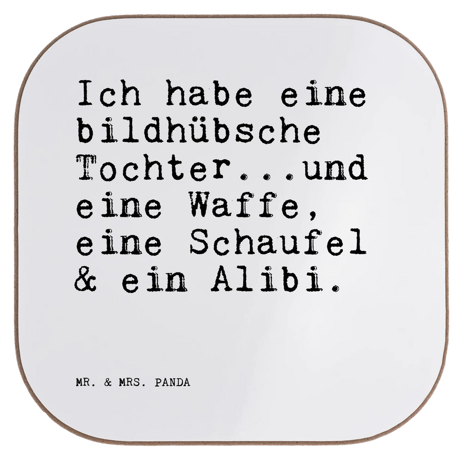 Quadratische Untersetzer Sprüche und Zitate Ich habe eine bildhübsche Tochter...und eine Waffe, eine Schaufel & ein Alibi. - Weiß