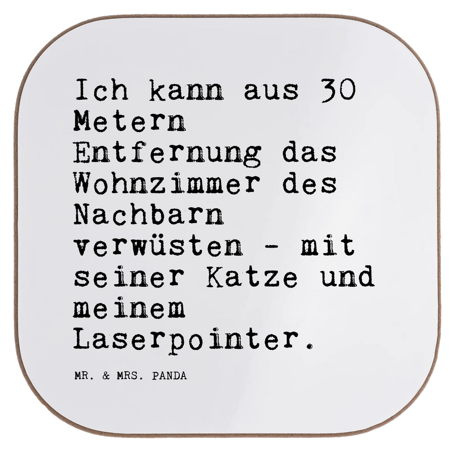 Quadratische Untersetzer Sprüche und Zitate Ich kann aus 30 Metern Entfernung das Wohnzimmer des Nachbarn verwüsten - mit seiner Katze und meinem Laserpointer. - Weiß