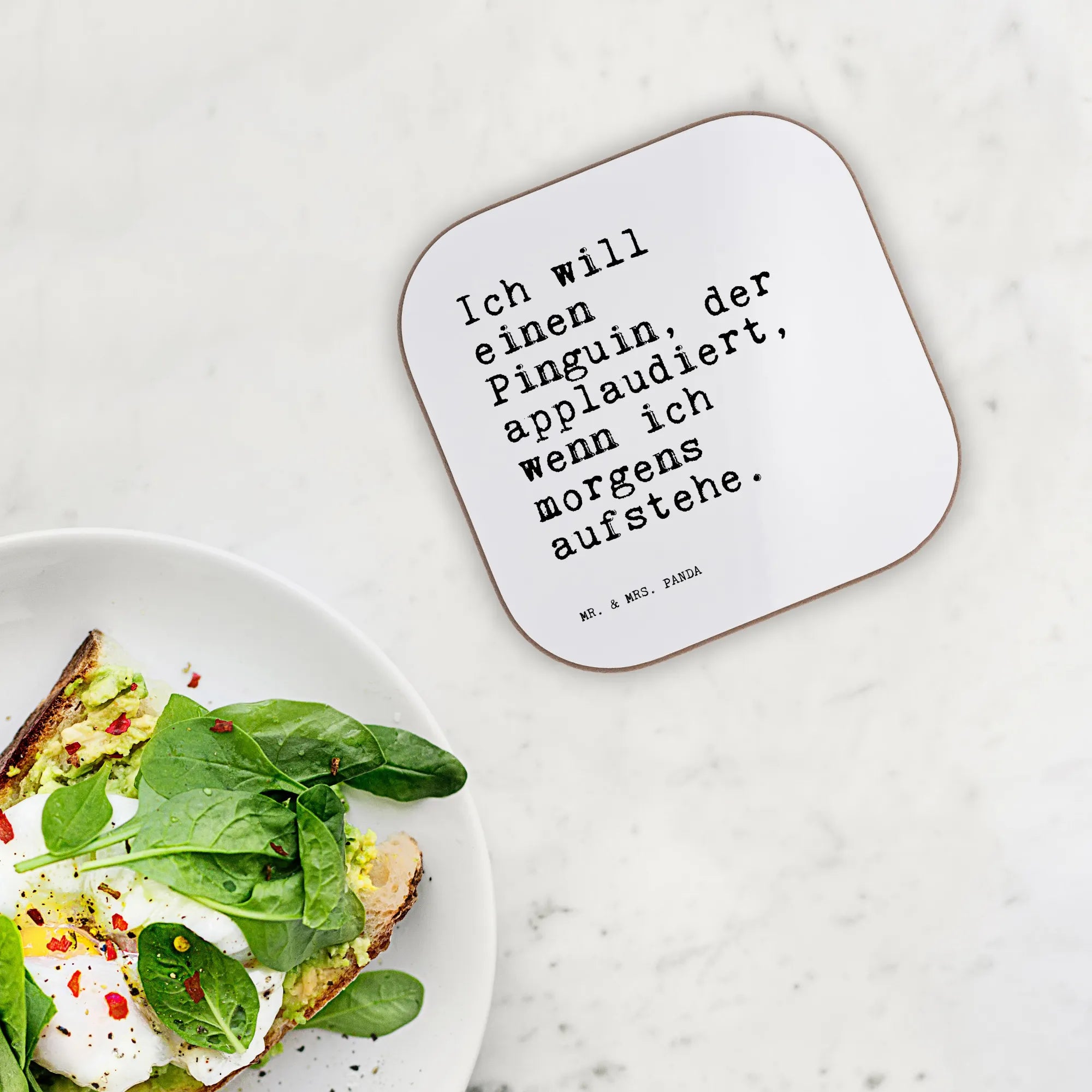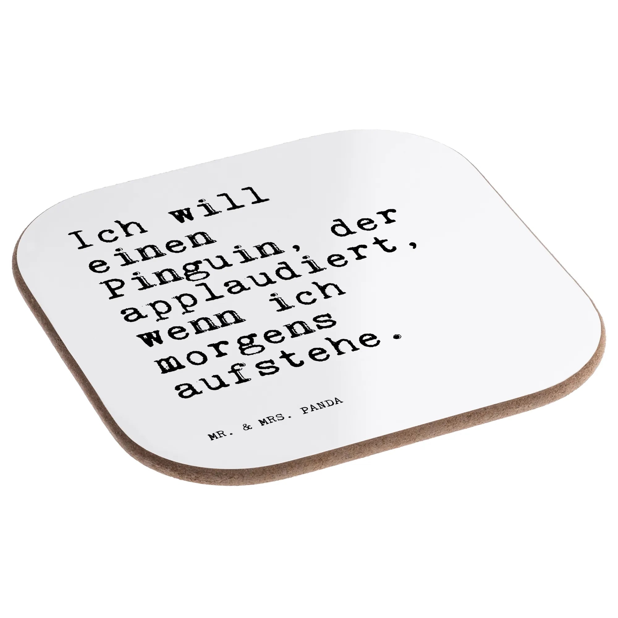 Quadratische Untersetzer Sprüche und Zitate Ich will einen Pinguin, der applaudiert, wenn ich morgens aufstehe. - Weiß