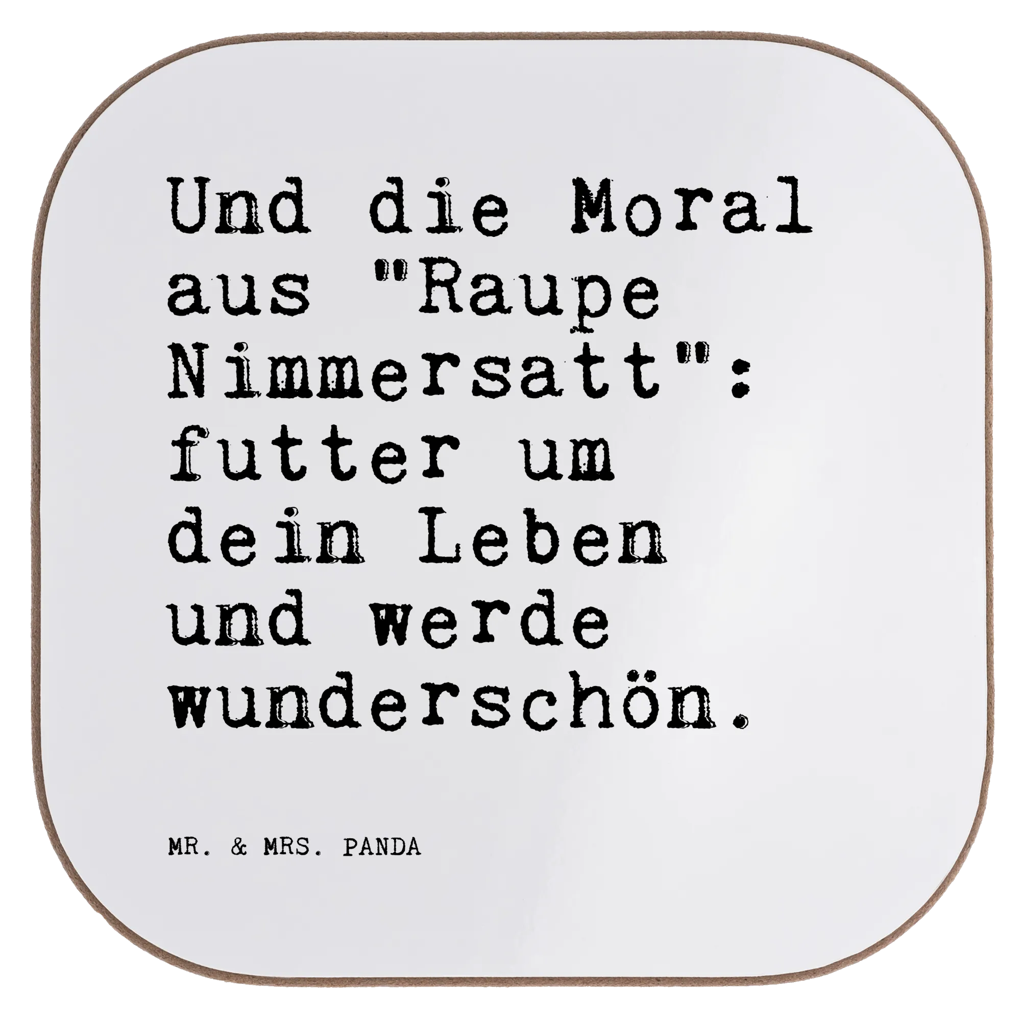 Entdecke unseren wunderbaren Untersetzer mit dem Spruch "Und die Moral aus 'Raupe Nimmersatt': Futter um dein Leben und werde wunderschön." von Mr. & Mrs. Panda. Dieser quadratische Untersetzer hat die perfekte Größe von 100 mm x 100 mm und eine Dicke von 5 mm. Hergestellt aus hochgradiger Hartfaser, bietet er nicht nur eine glänzende und hochwertige Oberfläche, sondern schützt deinen Tisch auch optimal vor unschönen Abdrücken, Kratzern und extremen Temperaturen. Die einzigartige Kombination aus Funktionalität und einem lebensfrohen Spruch macht diesen Untersetzer zu einem echten Hingucker in deinem Zuhause.