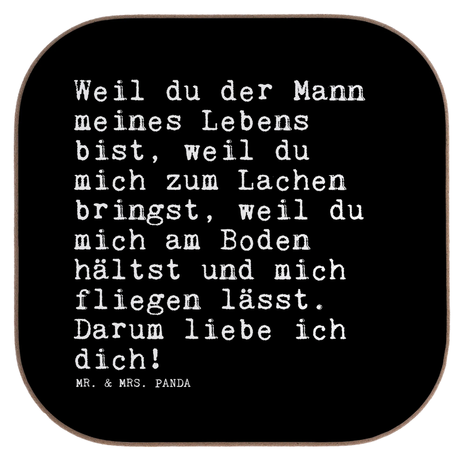 Quadratische Untersetzer Sprüche und Zitate Weil du der Mann meines Lebens bist, weil du mich zum Lachen bringst, weil du mich am Boden hältst und mich fliegen lässt. Darum liebe ich dich! - Schwarz