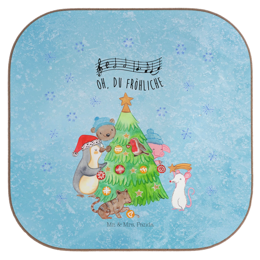 Der wunderschöne quadratische Untersetzer "Weihnachtsbaum schmücken" aus der Winter Kollektion von Mr. & Mrs. Panda ist das perfekte Geschenk für die Festtage! Mit seinem liebevoll gestalteten Motiv zeigt er einen Pinguin, ein Schwein, eine Maus, eine Katze und einen Bären, die zusammen um einen festlich geschmückten Weihnachtsbaum stehen. Dieser Untersetzer bringt nicht nur Weihnachtsstimmung in dein Zuhause, sondern ist auch äußerst praktisch.