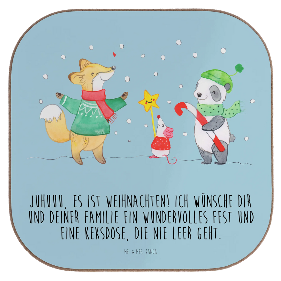Entdecke den zauberhaften Untersetzer 'Winter Weihnachtsfreude' aus der Winter Kollektion von Mr. & Mrs. Panda! Mit seinem liebevoll gestalteten Motiv einer lustigen Maus, einem fröhlichen Panda und einem schnurrenden Fuchs, die zusammen im schneebedeckten Winter stehen, bringt dieser Untersetzer direkt die Freude von Weihnachten in dein Zuhause. Der Slogan 'Juhuuu, es ist Weihnachten! Ich wünsche dir und deiner Familie ein wundervolles Fest und eine Keksdose, die nie leer geht.' lässt nicht nur Kinderaugen strahlen, sondern erfüllt auch dein Herz mit Wärme und Freude.