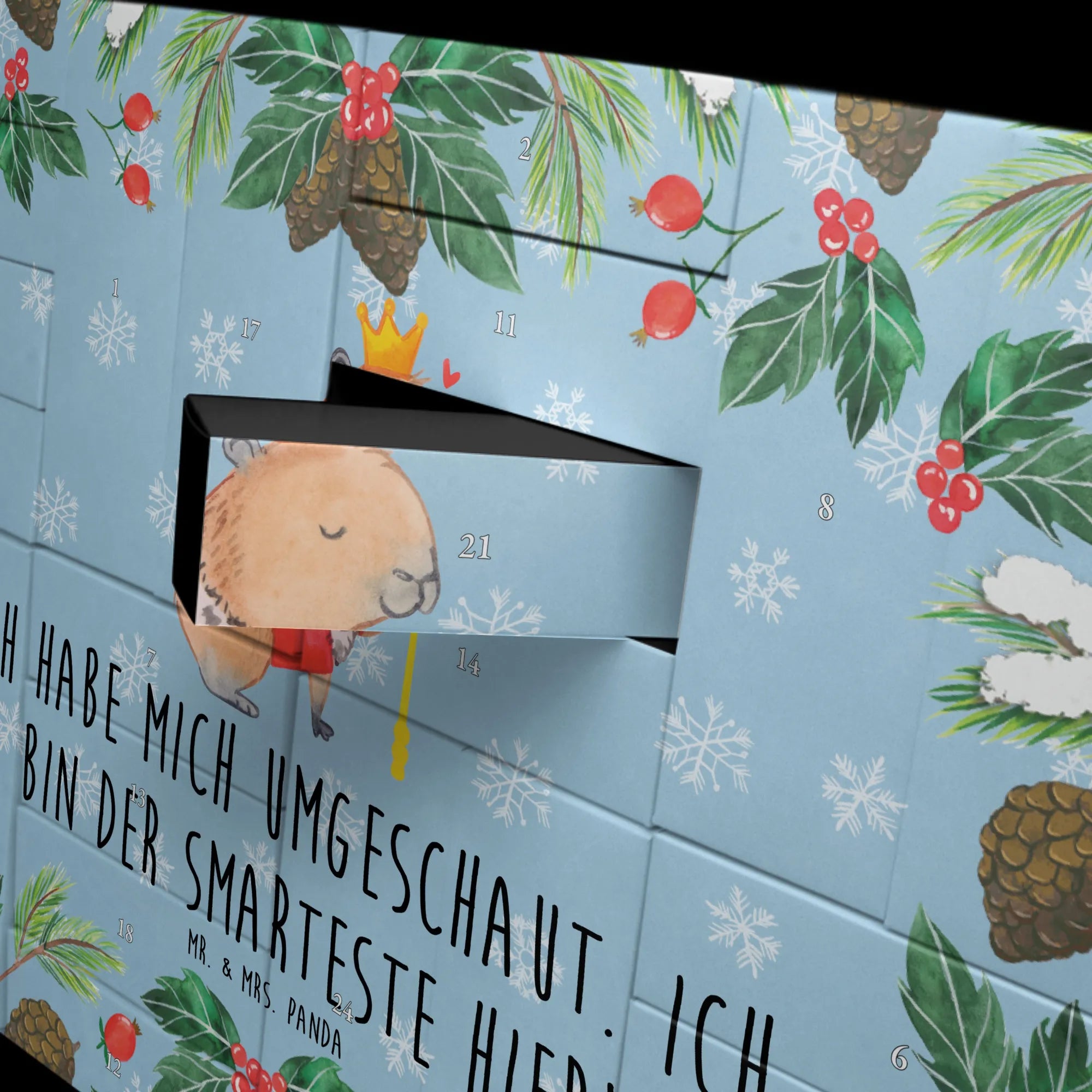 Hol Dir die fröhliche Magie der Small World Kollektion nach Hause und verschenke jeden Tag ein kleines Lächeln – mit dem befüllbaren Adventskalender Capybara König von Mr. & Mrs. Panda.