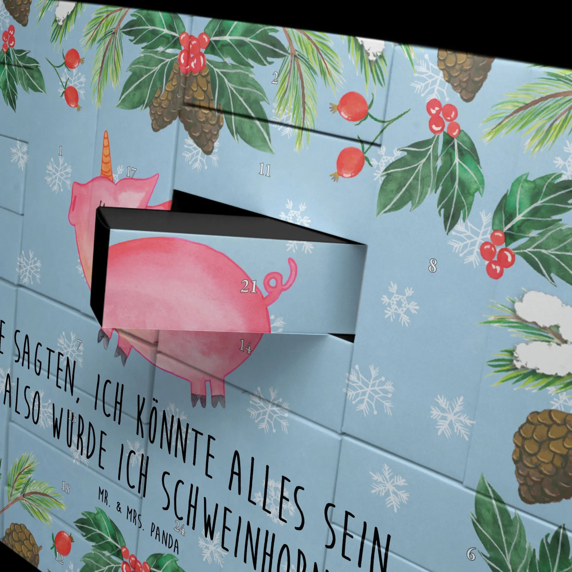 Zauberhaft, witzig und zum Selbstbefüllen: Unser Befüllbarer Adventskalender „Einhorn Schweinhorn“ aus der Einhorn - Kollektion von Mr. & Mrs. Panda macht die Vorweihnachtszeit zu einem liebevollen Erlebnis. Das handgezeichnete Schweinhorn mit dem Spruch „Sie sagten, ich könnte alles sein. Also wurde ich Schweinhorn!“ bringt Kinder und Erwachsene zum Schmunzeln 🎁✨