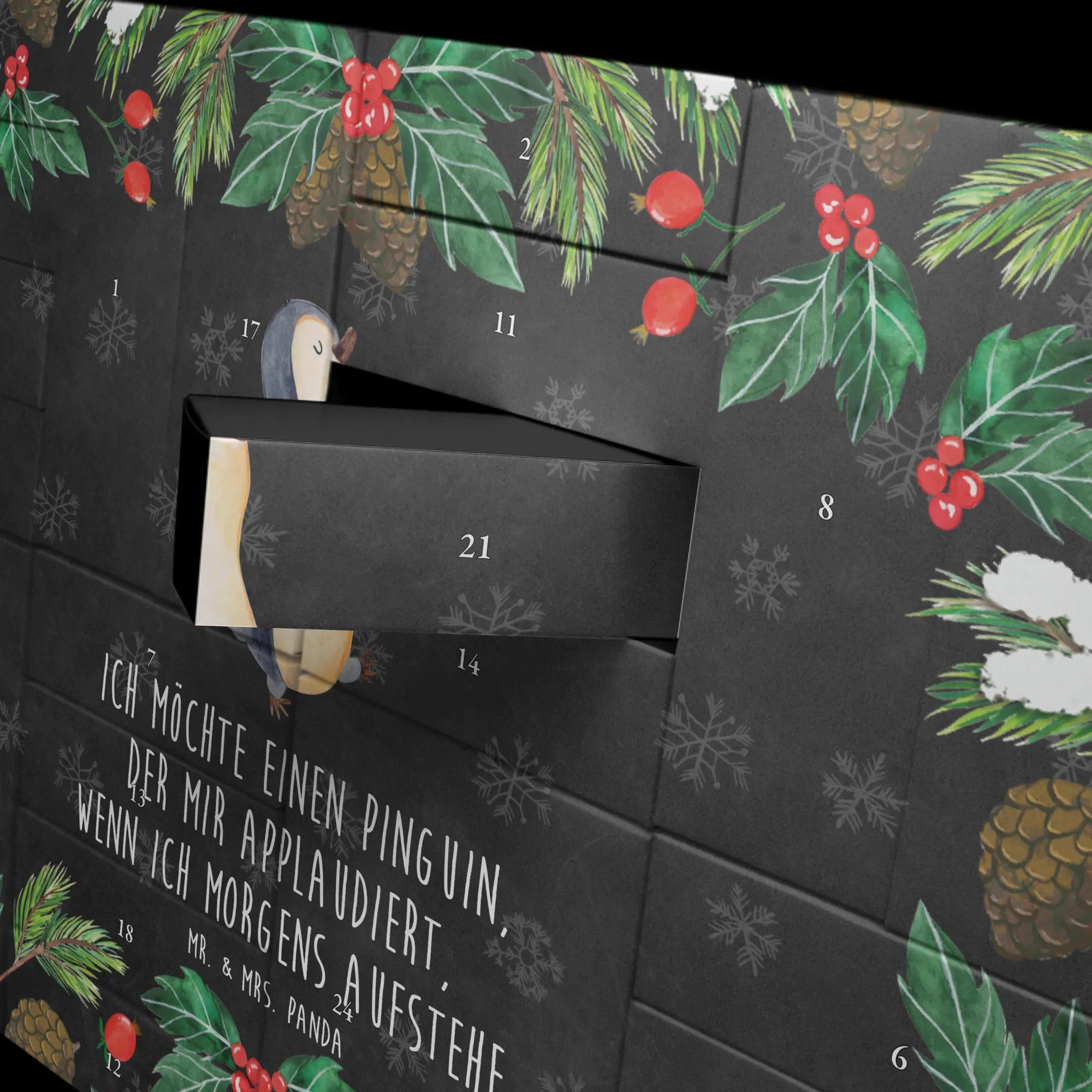 Ob für Frühaufsteher oder Langschläfer, dieser Kalender mit dem lächelnden Pinguin, der applaudiert, wenn du morgens aufstehst, ist ein Highlight für Jung und Alt. Mit insgesamt 24 Schachteln, die du nach Herzenslust selbst befüllen kannst, gibt es für jeden Tag eine kleine Überraschung. Perfekt für deine Familie, Geschwister oder als ein liebevolles Geschenk.
