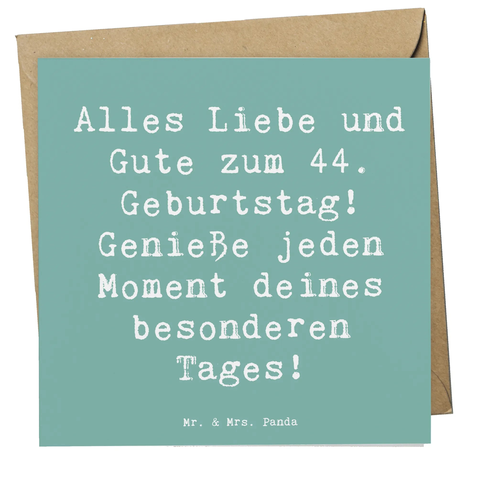 Diese Deluxe Karte von Mr. & Mrs. Panda ist das perfekte Geschenk für den 44. Geburtstag! 🎉 Sie wurde liebevoll entworfen und ist auf hochwertigem 300 Gramm Karton gedruckt. Mit einer Größe von 140 mm x 140 mm bietet sie Platz für deine persönlichen Grüße. Die Karte trägt den herzlichen Spruch: "Alles Liebe und Gute zum 44. Geburtstag! Genieße jeden Moment deines besonderen Tages!" und wird mit einem eleganten Umschlag geliefert.