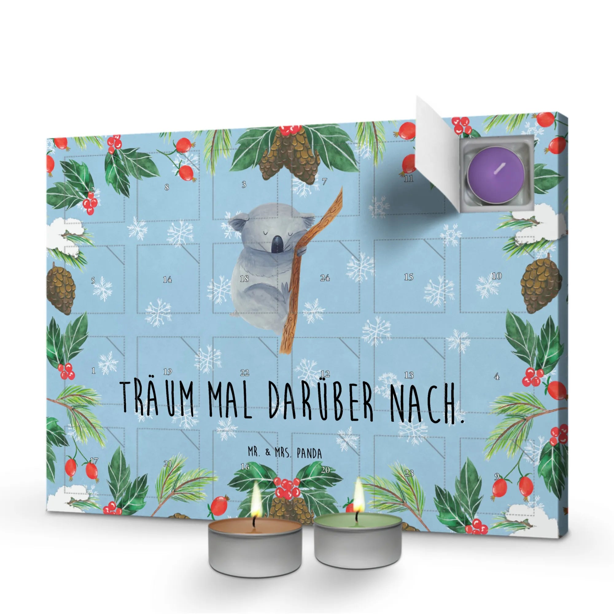 Dieser Duftkerzen Adventskalender mit Koalabär-Motiv ist das ideale Geschenk für Freunde, Familie oder dich selbst, um die Adventszeit in vollen Zügen zu genießen. Egal ob zum Geburtstag, zu Weihnachten oder einfach nur so, du machst mit diesem Kalender garantiert jedem eine Freude. Mit dem Motto „Träum mal darüber nach.“ wird jeder Tag zu einer kleinen Auszeit, die dir mit Sicherheit Freude bereiten wird.