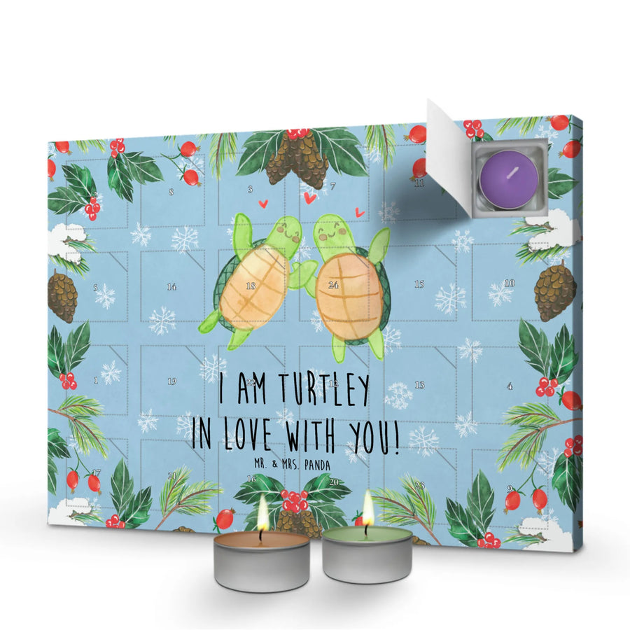 Du suchst das perfekte Geschenk für Deine Liebsten? Unser Duftkerzen Adventskalender mit dem süßen Motiv „Schildkröten Paar“ aus der Liebe Kollektion von Mr. & Mrs. Panda ist die ideale Wahl!