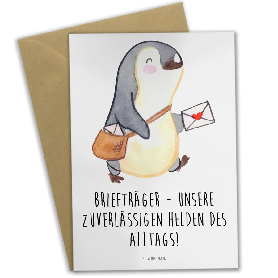 Die wunderschöne Grußkarte mit dem Motiv "Briefträger" aus der Dankeschön-Kollektion von Mr. & Mrs. Panda ist der perfekte Weg, um deine Wertschätzung auf eine liebevolle und unvergessliche Art auszudrücken. Diese Karte ist nicht nur ein einfacher Gruß, sondern ein kleines Kunstwerk, das jedem Empfänger ein Lächeln ins Gesicht zaubert.