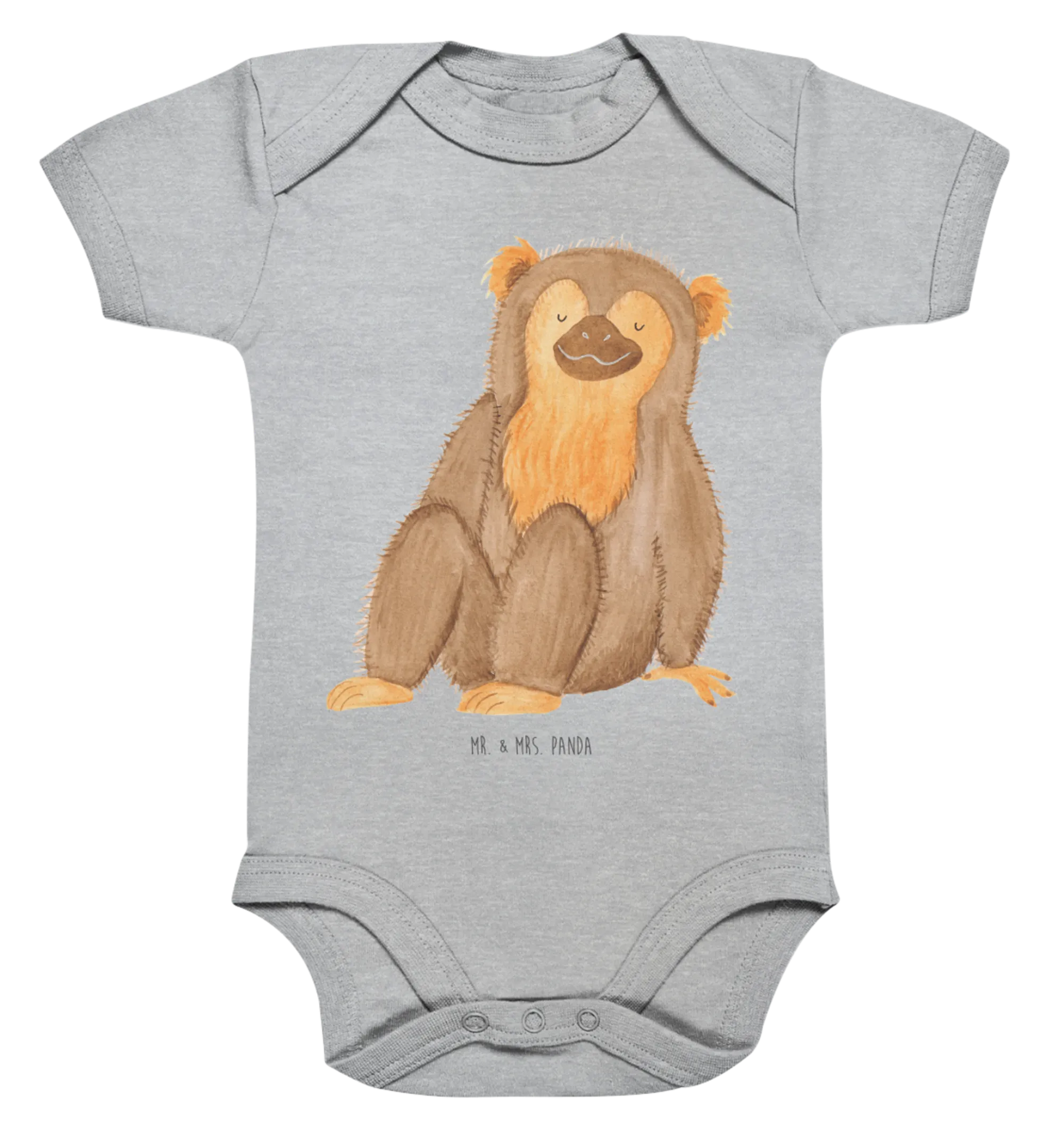 Der strahlend schöne Hintergrund in Heather Grey bringt das Affen-Motiv wunderbar zur Geltung. Egal, ob du Eltern beschenken möchtest oder selbst frischgebackener Mama oder Papa bist – dieser Strampler ist das ideale Geschenk zur Geburt, zur Taufe oder einfach nur so! 🎁 Mit diesem Geschenk zauberst du ein Lächeln ins Gesicht der jungen Eltern und schaffst gleichzeitig eine bleibende Erinnerung an die unvergesslichen ersten Monate.