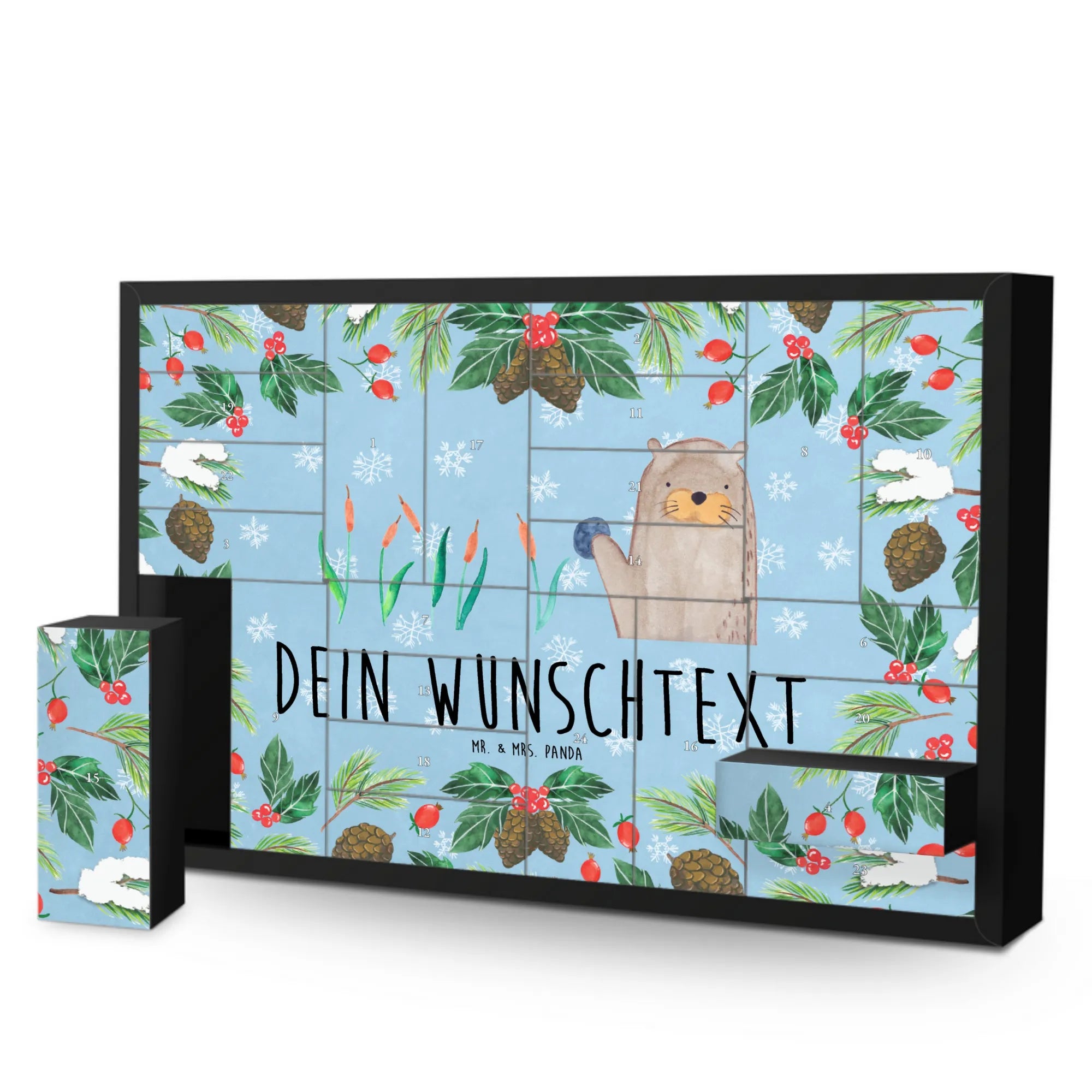 Lass die Otter-Kollektion von Mr. & Mrs. Panda dein Zuhause mit Liebe und Freude erfüllen. Der Kalender wird ohne Füllung geliefert, sodass du ganz nach deinem Geschmack gestalten kannst, was drin ist. Mache jetzt jemandem eine ganz besondere Freude zur Adventszeit mit diesem einzigartigen Gift, das Herzen höher schlagen lässt!