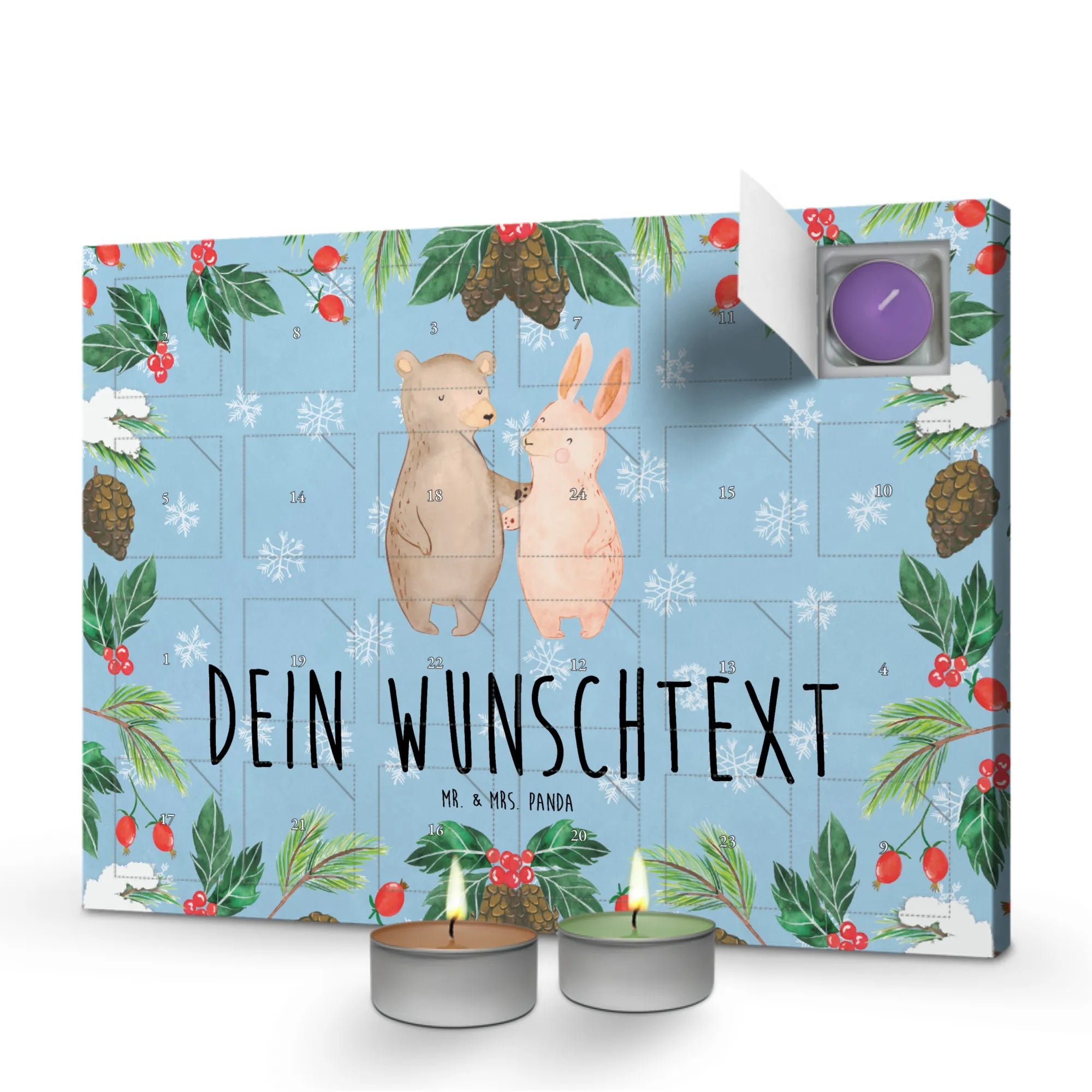 Personalisierter Duftkerzen Adventskalender Bär und Hase Umarmen - Eisblau