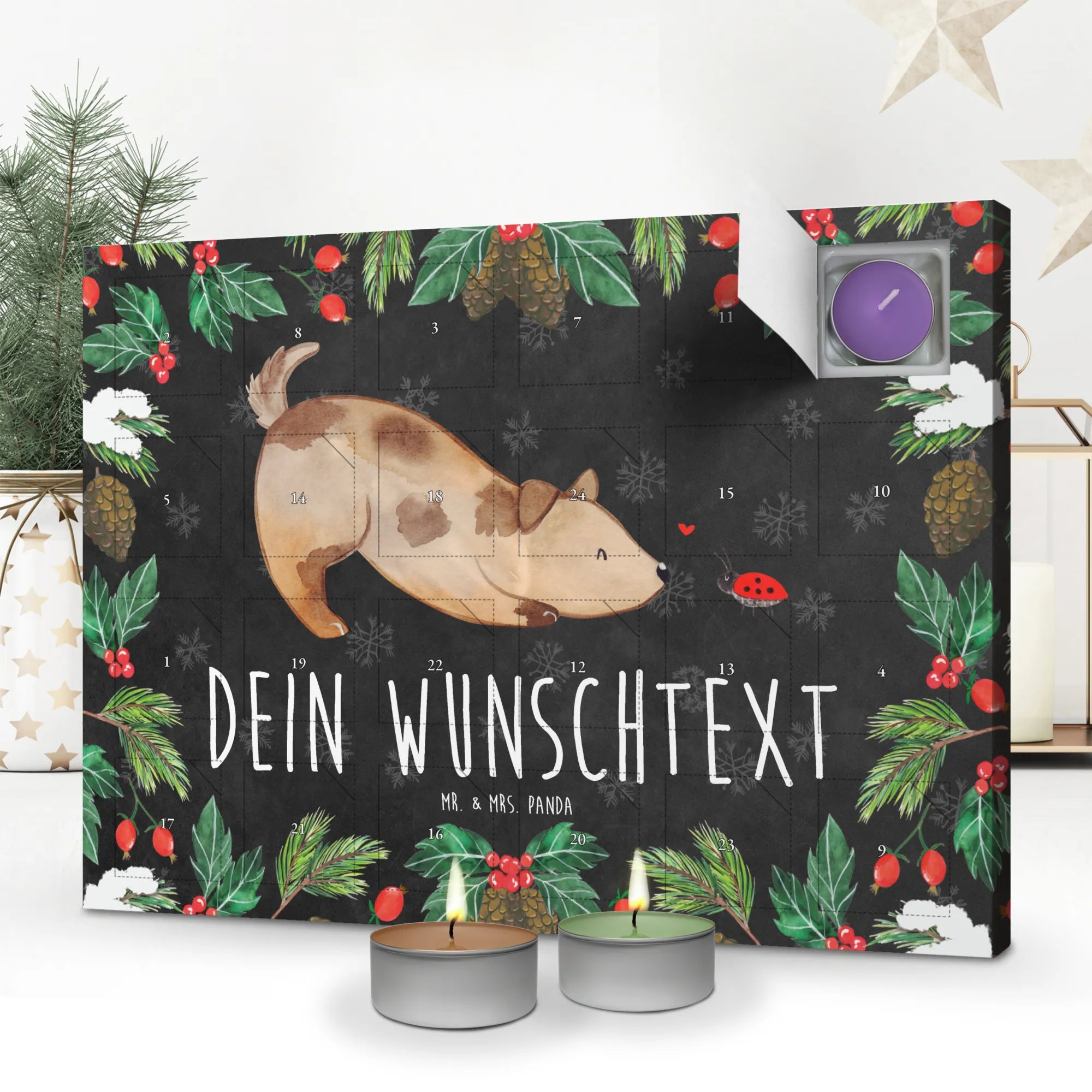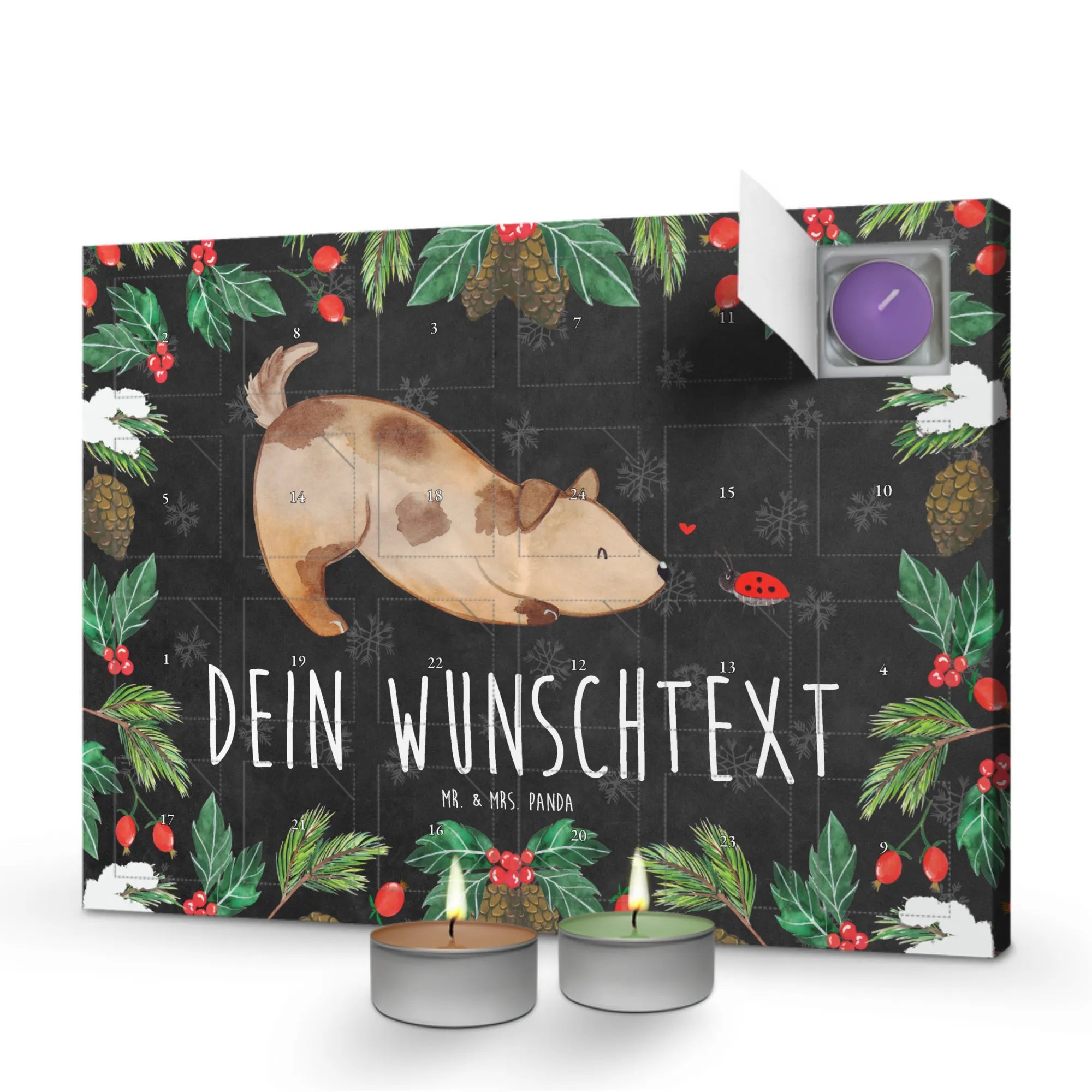 Personalisierter Duftkerzen Adventskalender Hund Marienkäfer - Kreidetafel