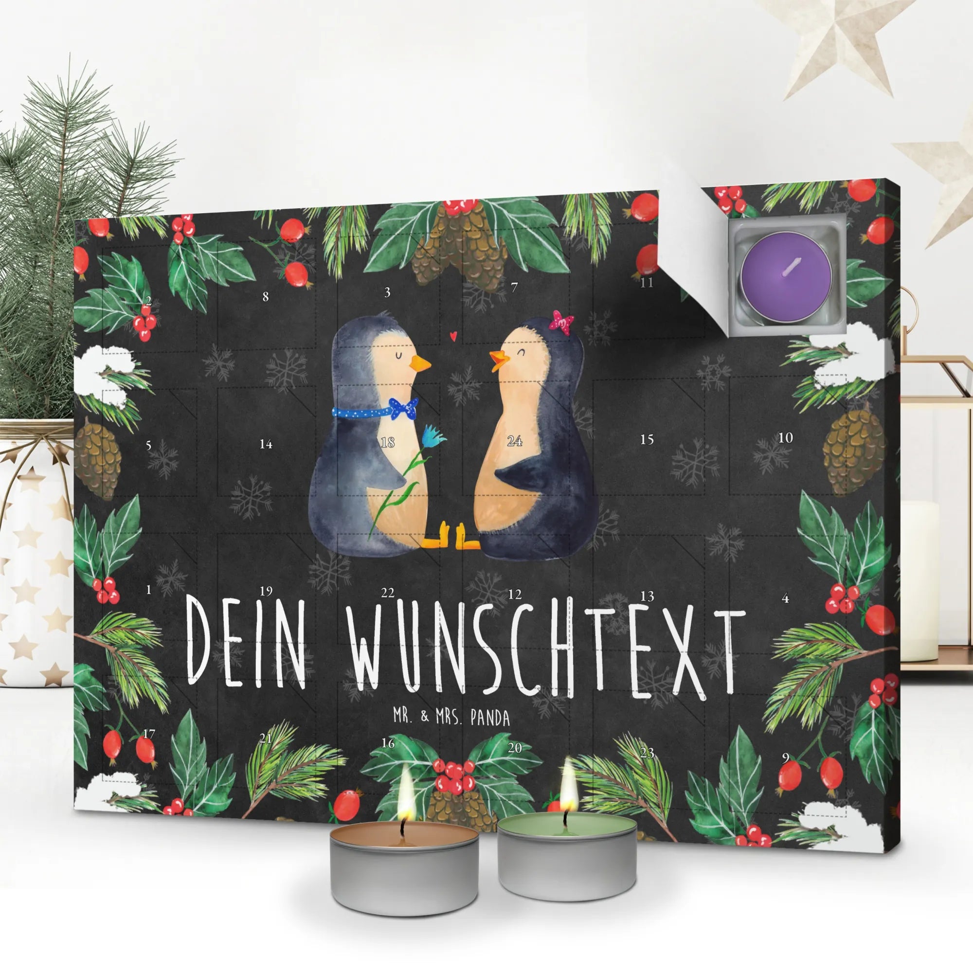 Entdecke den perfekt personalisierbaren Duftkerzen Adventskalender mit dem süßen Pinguin Pärchen, das von Mr. & Mrs. Panda liebevoll gestaltet wurde. Diese wundervolle Kollektion ist ideal für alle, die Liebe und Zuneigung zeigen möchten – sei es zu Weihnachten, zum Jahrestag oder als Hochzeitsgeschenk für das Traumpaar. Mit dem Slogan 'Du bist alles für mich. Wenig Worte. Viel Bedeutung.' wird jeder Tag im Advent zu einem besonderen Erlebnis voller Sinnlichkeit und Wärme.