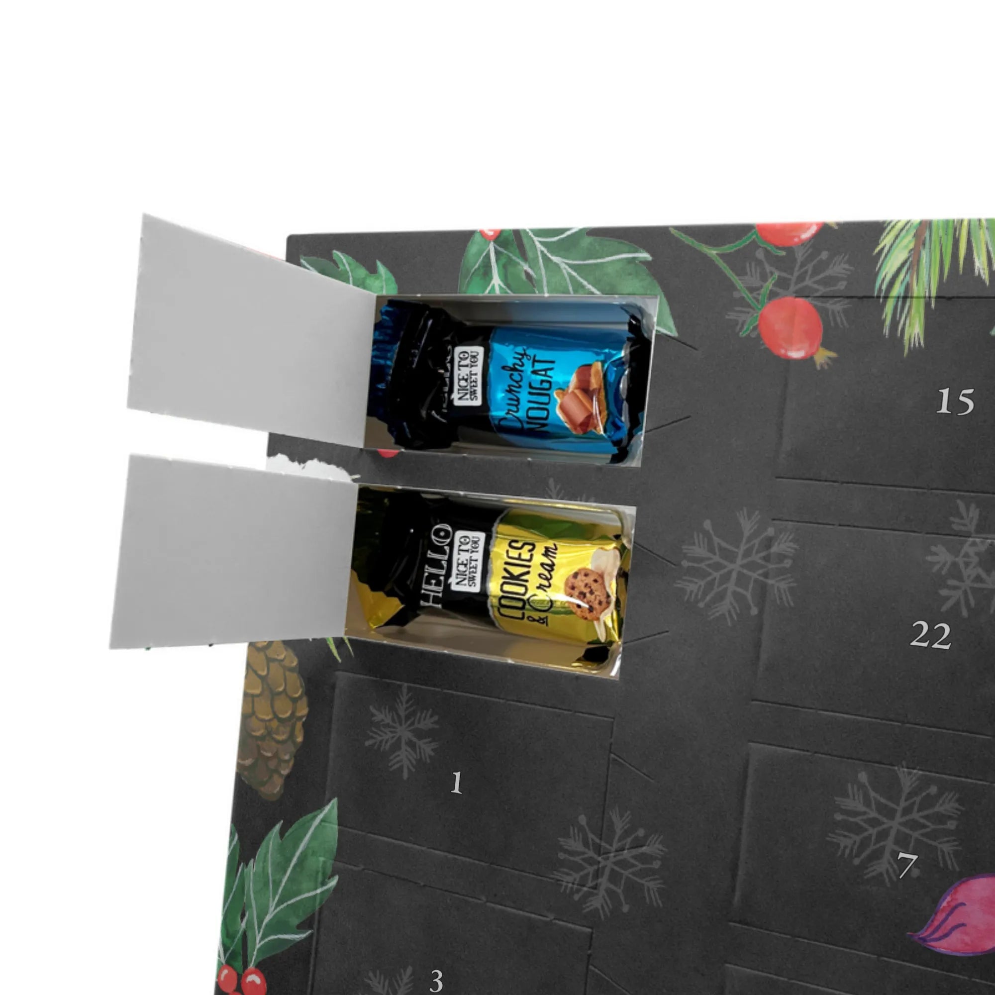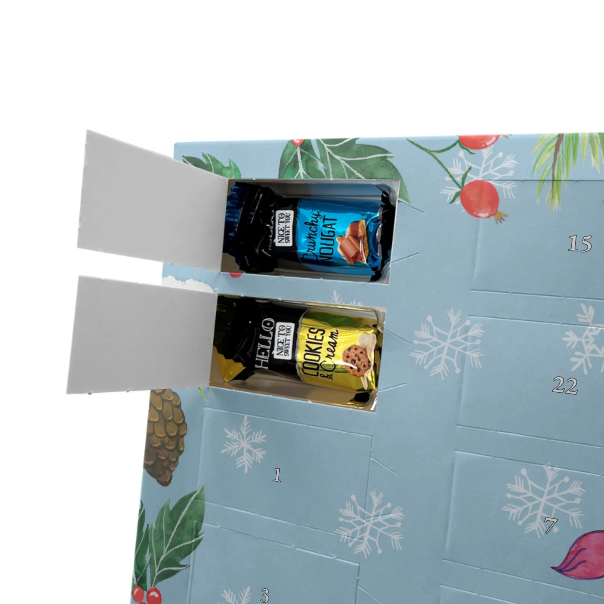 Personalisierter Schoko-Adventskalender von Mr. & Mrs. Panda – liebevoll gestaltet und ideal als individuelles Geschenk in der Adventszeit. Wir bedrucken den Kalender mit zauberhaften Motiven & herzlichen Sprüchen und personalisieren ihn mit deinem Wunschnamen oder Wunschtext. Die hochwertige Druckqualität kombiniert mit einer seidenmatten Oberflächenveredelung sorgt für ein edles Erscheinungsbild, und die bedruckten Seitenflächen geben dem Motiv zusätzlichen Charme. Der Kalender kann aufgehängt oder aufgestellt werden, sodass du ihn flexibel platzieren kannst. Gefüllt ist der Kalender mit Celebrations, die 24 hochwertige Überraschungen in 8 verschiedenen Sorten beinhalten: Maltesers, Mars, Snickers, Twix, Milky Way, Bounty, Galaxy und Galaxy Caramel. Maße: 325 mm x 225 mm x 27 mm – handlich und doch großzügig für die kleinen Leckereien hinter den Türchen. Ob für Kinder, Partner oder beste Freunde: dieser personalisierte Schoko-Adventskalender macht das Warten auf Weihnachten bunter und leckerer. Verschenke eine persönliche Erinnerung und jeden Tag ein kleines Schokoladen-Glück!