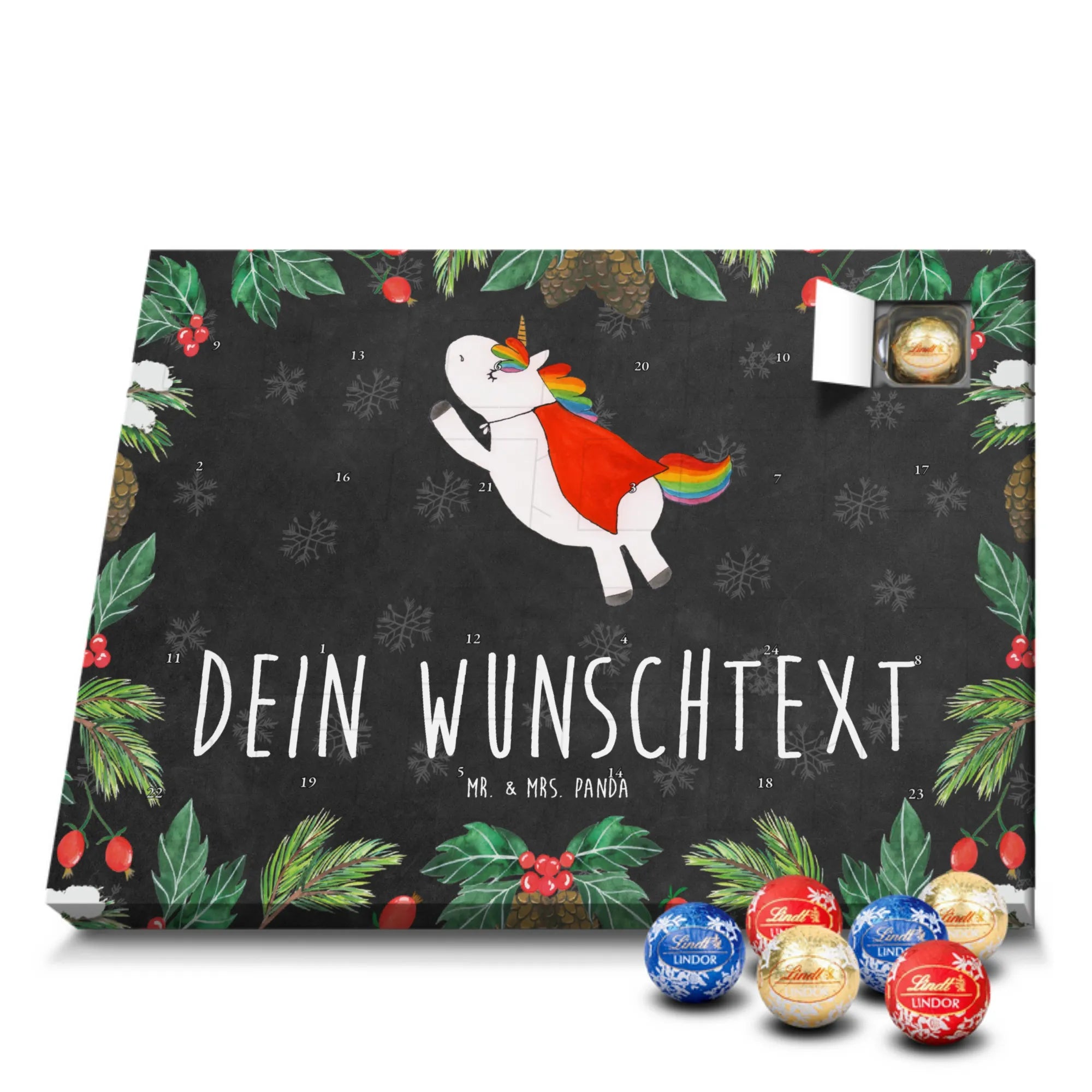Personalisierter Schoko Adventskalender „Einhorn Super“ aus der Einhorn - Kollektion von Mr. & Mrs. Panda – das ideale Geschenk für Einhorn-Fans, Mädchen und Deine beste Freundin. Das handgezeichnete Einhorn im Superhelden-Kostüm trägt den liebevollen Spruch „Every girl needs a superhero“ und sorgt für ein Lächeln an jedem Adventstag. 🎀