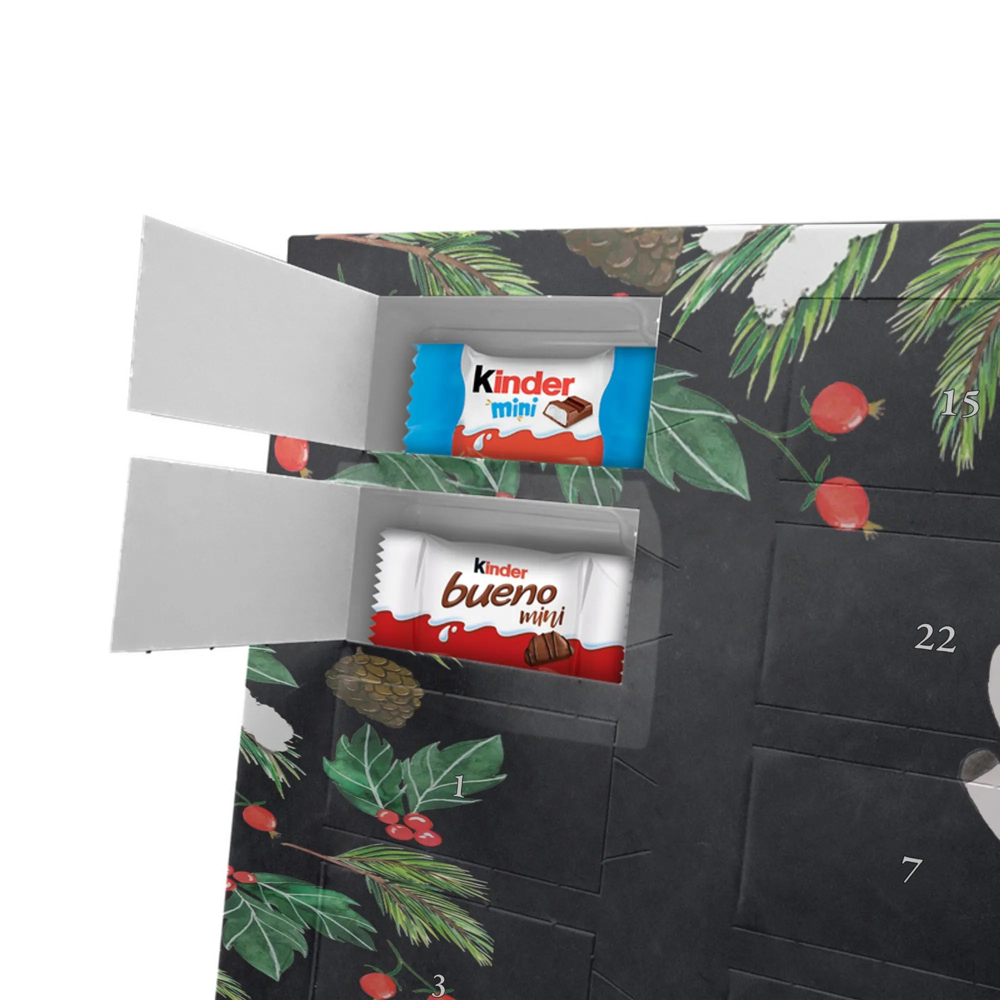 Wunderschöner Personalisierter Schoko Adventskalender von Mr. & Mrs. Panda – perfekt, um die Vorweihnachtszeit besonders persönlich zu gestalten. Unser liebevoll gestalteter Adventskalender ist bedruckt mit wunderschönen Motiven & Sprüchen von Mr. & Mrs. Panda und lässt sich mit deinem Wunschnamen oder Wunschtext personalisieren. Die brillante Druckqualität mit seidenmatter Oberflächenveredelung sorgt für einen edlen Look, und auch die Seitenflächen sind bedruckt, sodass der Kalender von allen Seiten ein Hingucker ist. Du kannst ihn sowohl aufgehängt als auch aufgestellt verwenden, je nachdem, wie es bei dir am besten passt. Maße: 355 mm x 245 mm x 11 mm – kompakt genug, um überall Platz zu finden, und groß genug für eine schöne Überraschung hinter jedem Türchen. Besonderheit: kann aufgehängt oder aufgestellt werden, ideal für Tisch, Regal oder Wand. Gefüllt mit kinder® Schokolade: Adventskalender gefüllt mit kinder® Schokolade; Inhalt: kinder® Schoko-Bons, kinder® Bueno mini und kinder® Schokolade mini. Ein toller persönlicher Adventsteller für Freunde, Familie oder dich selbst – zaubere jeden Tag ein Lächeln ins Gesicht mit süßen Highlights und einem liebevollen Design von Mr. & Mrs. Panda.