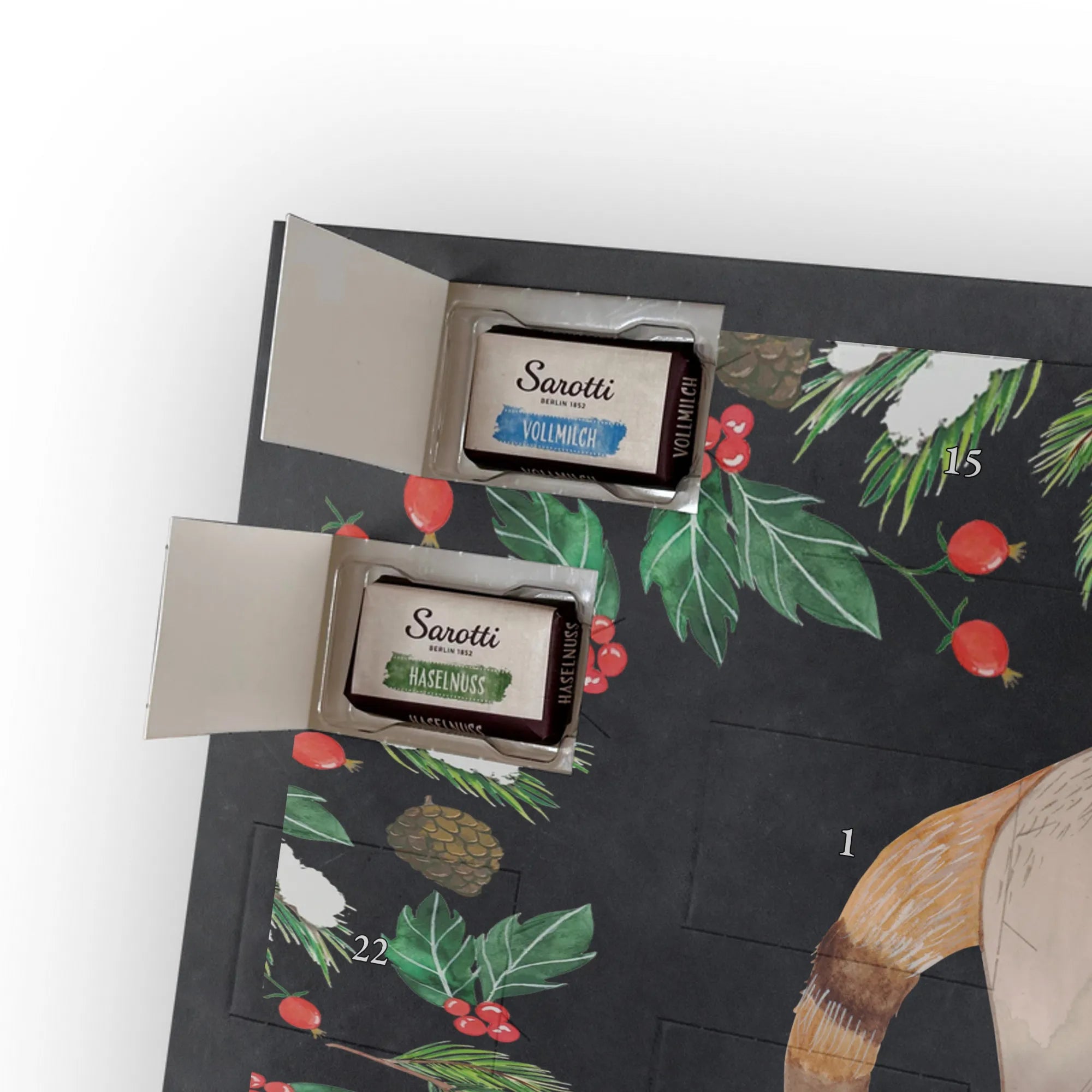 Personalisierter Schoko Adventskalender von Mr. & Mrs. Panda – der perfekte Adventskalender mit Namen für alle, die Geschenke mit Persönlichkeit lieben. Unsere Designs sind mit süßen Illustrationen und liebevollen Sprüchen bedruckt und lassen sich ganz easy mit deinem Namen oder kurzem Wunschtext versehen. Die hochwertige, seidenmatte Oberflächenveredelung verleiht dem Kalender ein edles Finish, und auch die Seitenflächen sind vollständig bedruckt – kleine Details mit großer Wirkung. Maße: 355 mm x 245 mm x 11 mm. Du kannst den Kalender sowohl aufhängen als auch aufstellen, je nachdem, wie du ihn präsentieren möchtest. Gefüllt ist er mit 24 einzeln verpackten Schokoladentäfelchen in vier köstlichen Geschmacksrichtungen. Insgesamt enthält er 107 g Markenschokolade von Sarotti® und Confiserie Heidel®: Vollmilch, Nougat, Zartbitter und Haselnuss. Wichtig: Es handelt sich um einen Kalender gefüllt mit Sarotti® und Confiserie Heidel® Markenschokolade. Ob als Geschenk für die Liebsten oder als besonderer Adventsüberraschung für dich selbst – dieser Adventskalender zaubert jeden Tag ein Lächeln!
