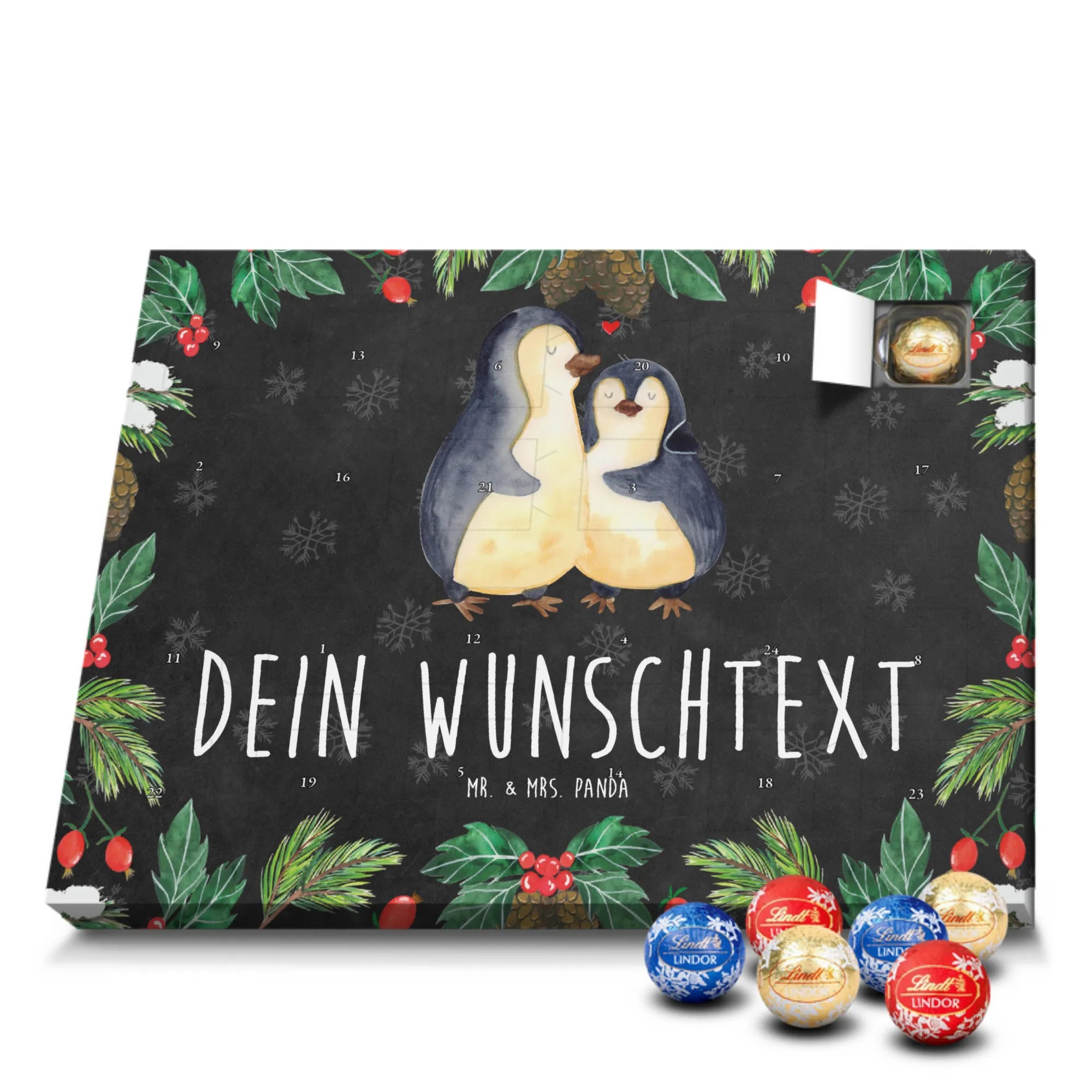 Adventskalender mit Namen Pinguin umarmen - Lindt LINDOR - Kreidetafel