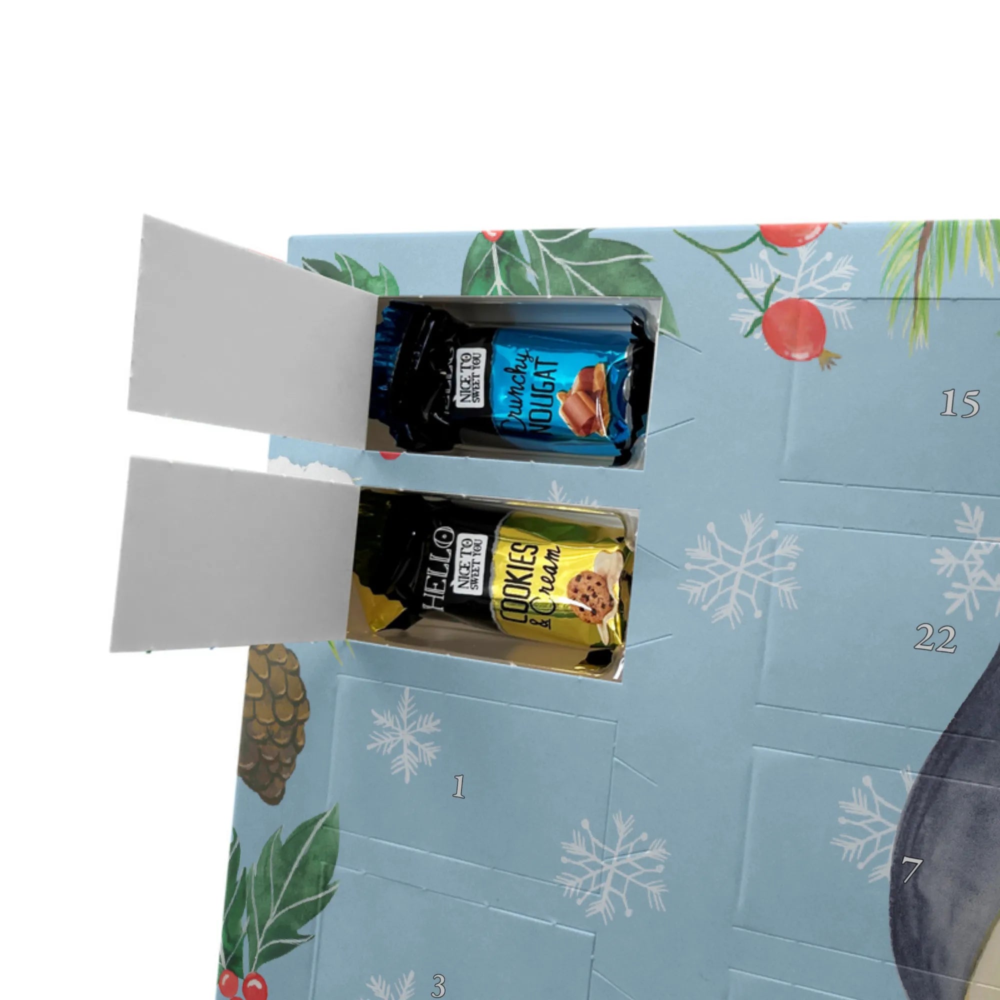Hol dir Weihnachtszauber: Gestalte jetzt deinen personalisierten Schoko Adventskalender von Mr. & Mrs. Panda und verschenke jeden Tag ein Lächeln!