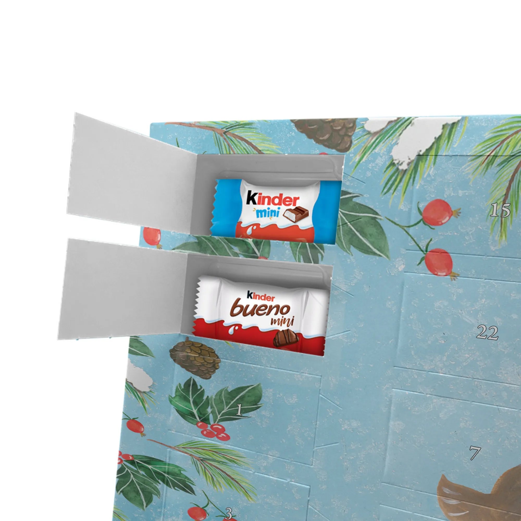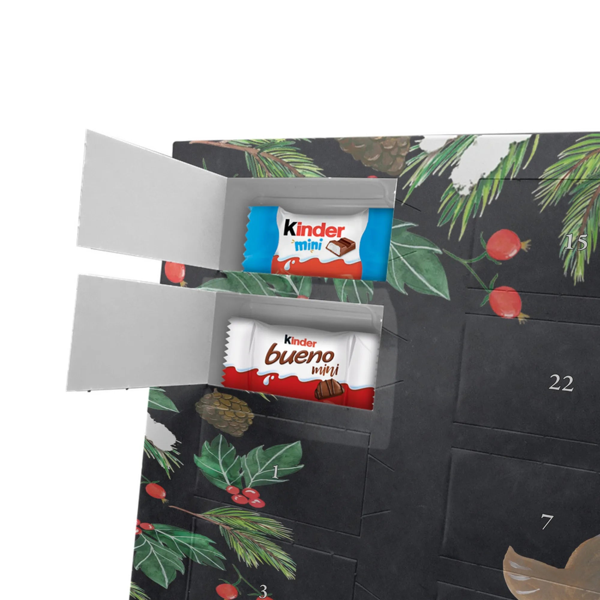 Feier die Vorfreude mit einem persönlichen Hingucker: unser Personalisierter Schoko Adventskalender von Mr. & Mrs. Panda. Dieser Kalender ist liebevoll mit wunderschönen Motiven & Sprüchen bedruckt und kann mit deinem Wunschnamen oder Wunschtext individualisiert werden – perfekt für eine persönliche Überraschung jeden Adventstag. Die brillante Druckqualität und die seidenmatte Oberflächenveredelung geben dem Kalender einen edlen Look, und die bedruckten Seitenflächen machen ihn rundum dekorativ. Besonders praktisch: der Kalender kann aufgehängt oder aufgestellt werden, je nachdem, wie du ihn präsentieren möchtest. Maße: 355 mm x 245 mm x 11 mm – ein ideales Format für dekorative Platzierung und genügend Raum für leckere Türchenüberraschungen. Gefüllt mit kinder® Schokolade: Adventskalender gefüllt mit kinder® Schokolade; Inhalt: kinder® Schoko-Bons, kinder® Bueno mini und kinder® Schokolade mini. Ob als Geschenk für Kinder, Partner oder beste Freunde – mit Mr. & Mrs. Panda verschenkst du nicht nur Süßes, sondern echte Vorfreude und liebevolle Gestaltung.