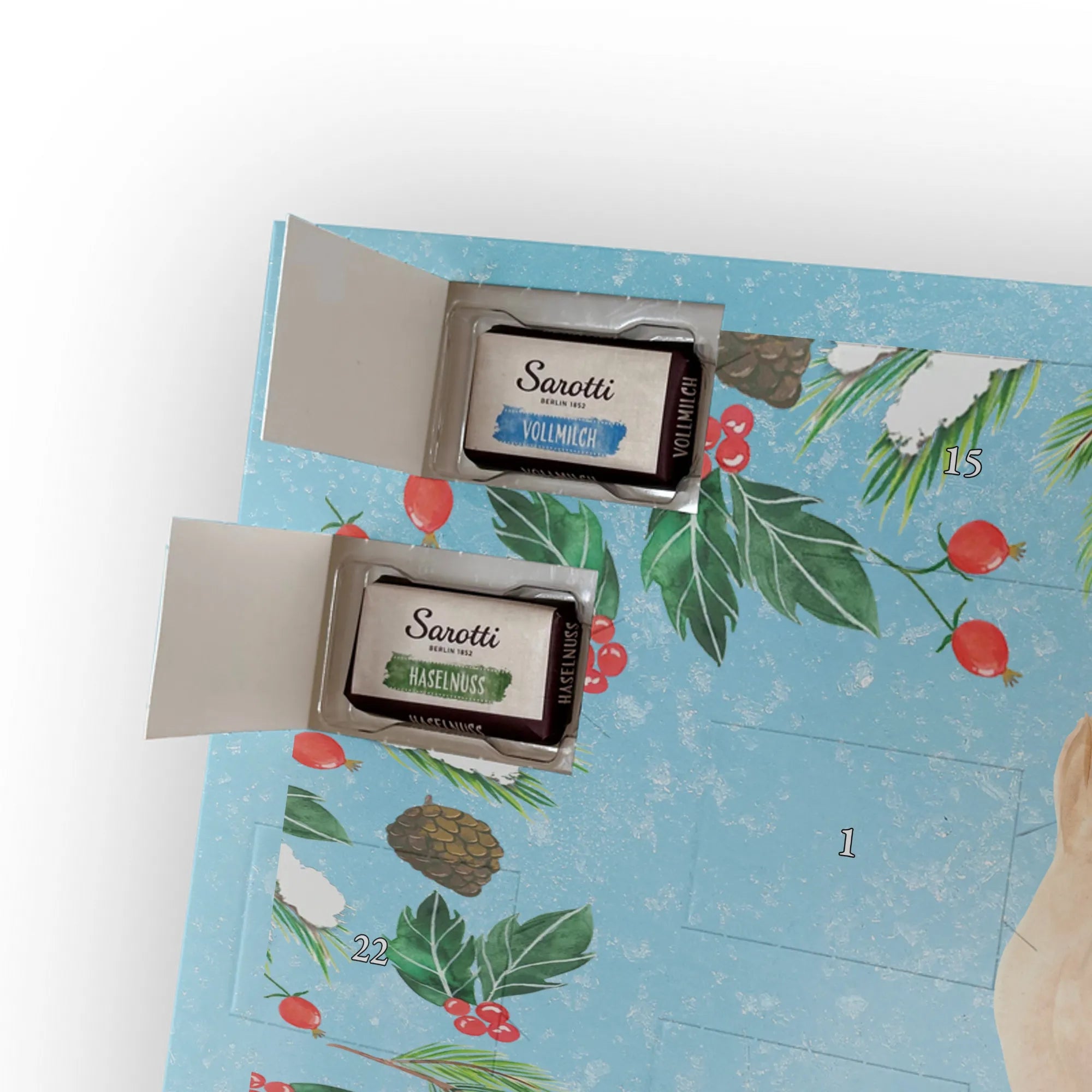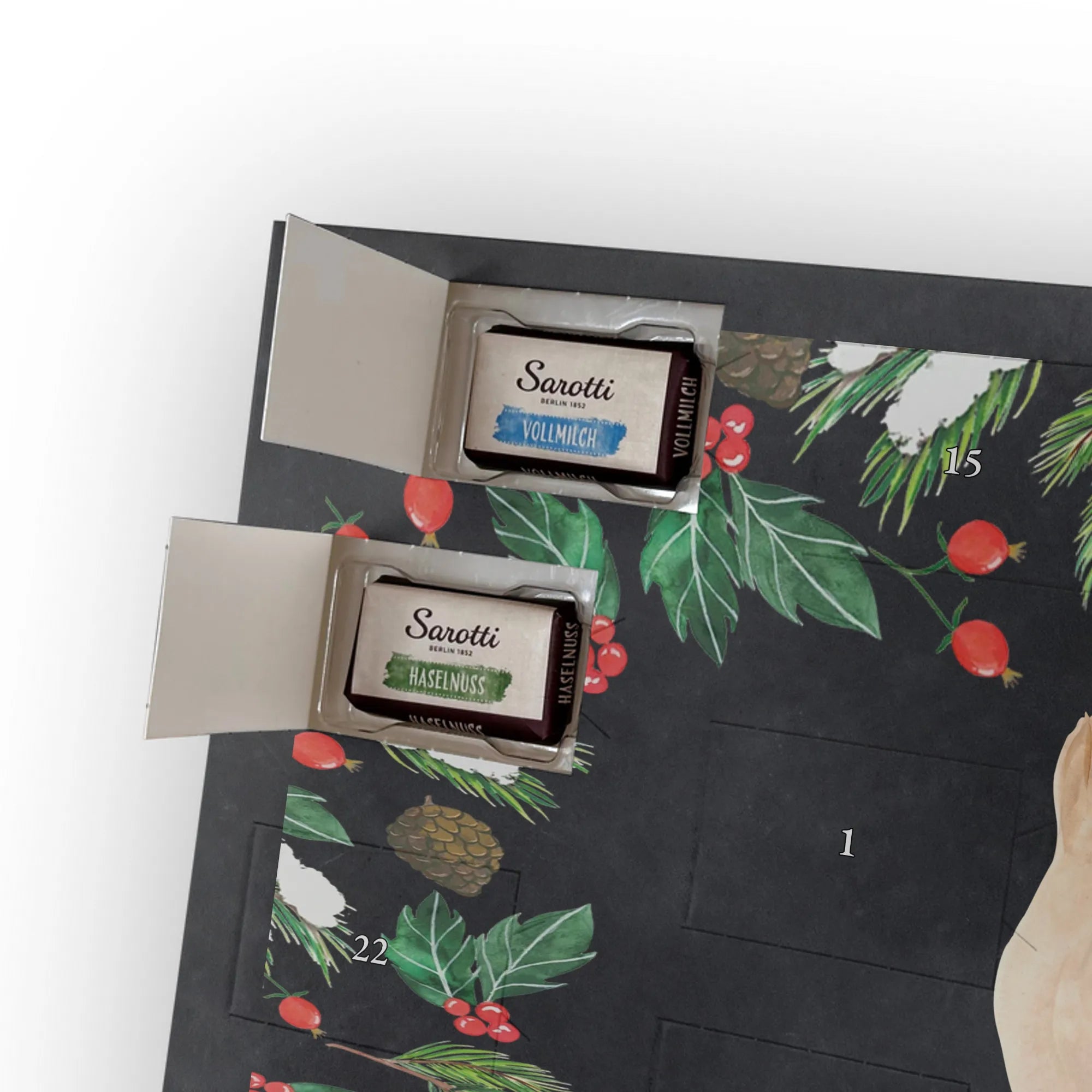 Personalisierter Schoko Adventskalender von Mr. & Mrs. Panda – der perfekte Adventskalender mit Namen für alle, die Geschenke mit Persönlichkeit lieben. Unsere Designs sind mit süßen Illustrationen und liebevollen Sprüchen bedruckt und lassen sich ganz easy mit deinem Namen oder kurzem Wunschtext versehen. Die hochwertige, seidenmatte Oberflächenveredelung verleiht dem Kalender ein edles Finish, und auch die Seitenflächen sind vollständig bedruckt – kleine Details mit großer Wirkung. Maße: 355 mm x 245 mm x 11 mm. Du kannst den Kalender sowohl aufhängen als auch aufstellen, je nachdem, wie du ihn präsentieren möchtest. Gefüllt ist er mit 24 einzeln verpackten Schokoladentäfelchen in vier köstlichen Geschmacksrichtungen. Insgesamt enthält er 107 g Markenschokolade von Sarotti® und Confiserie Heidel®: Vollmilch, Nougat, Zartbitter und Haselnuss. Wichtig: Es handelt sich um einen Kalender gefüllt mit Sarotti® und Confiserie Heidel® Markenschokolade. Ob als Geschenk für die Liebsten oder als besonderer Adventsüberraschung für dich selbst – dieser Adventskalender zaubert jeden Tag ein Lächeln!