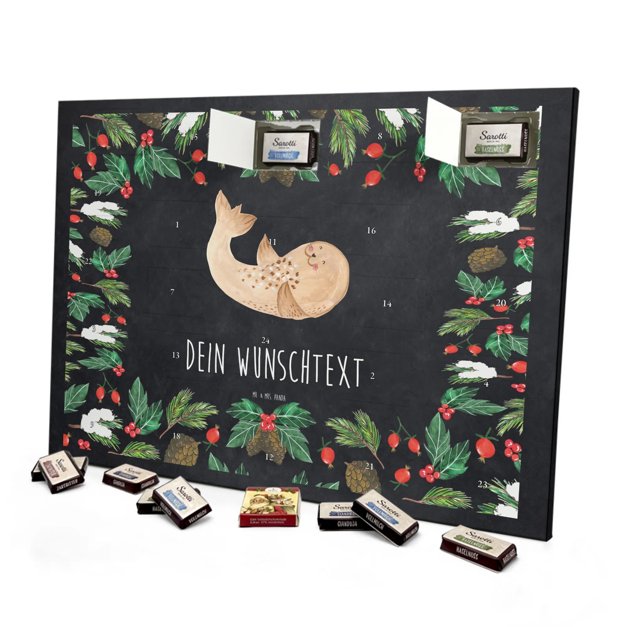 JETZT PERSONALISIEREN & VERSCHENKEN: Kreiere deinen individuellen Schokoladen Adventskalender von Mr. & Mrs. Panda – liebevoll bedruckt und gefüllt mit MARKENNAMEN Schokolade!