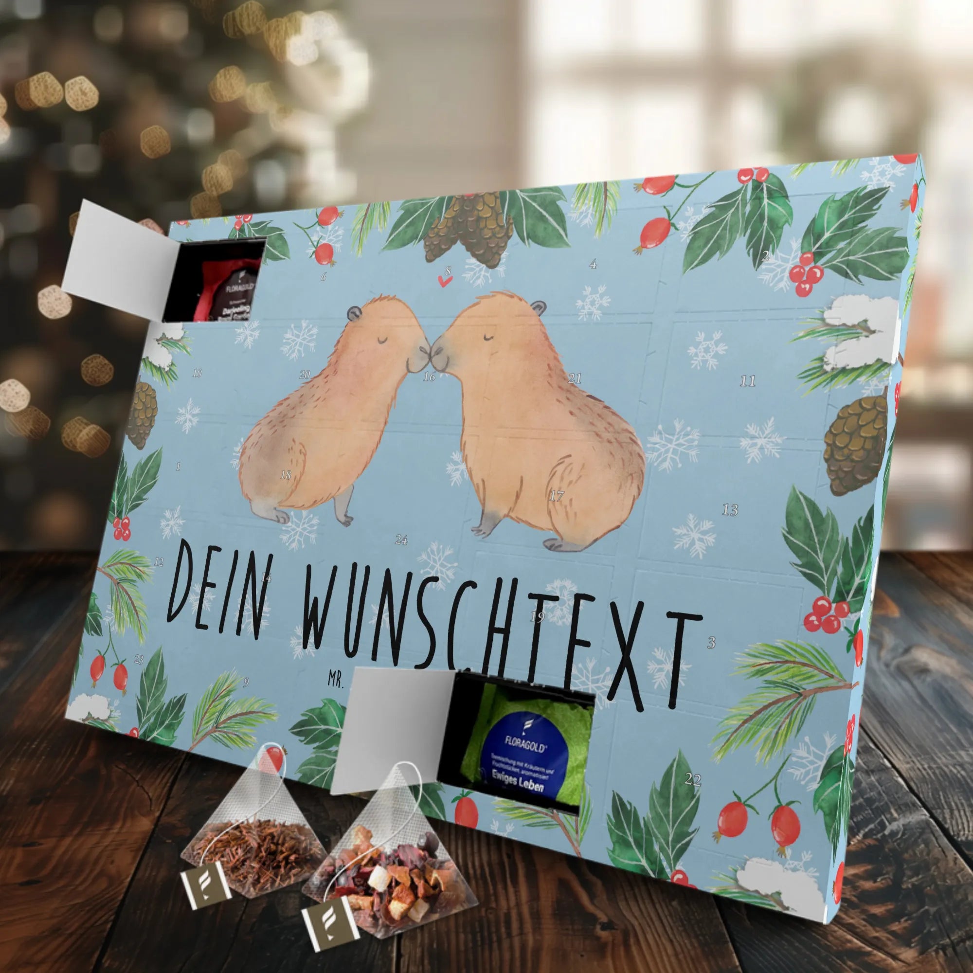 Personalisierter Tee Adventskalender Capybara Liebe - Eisblau