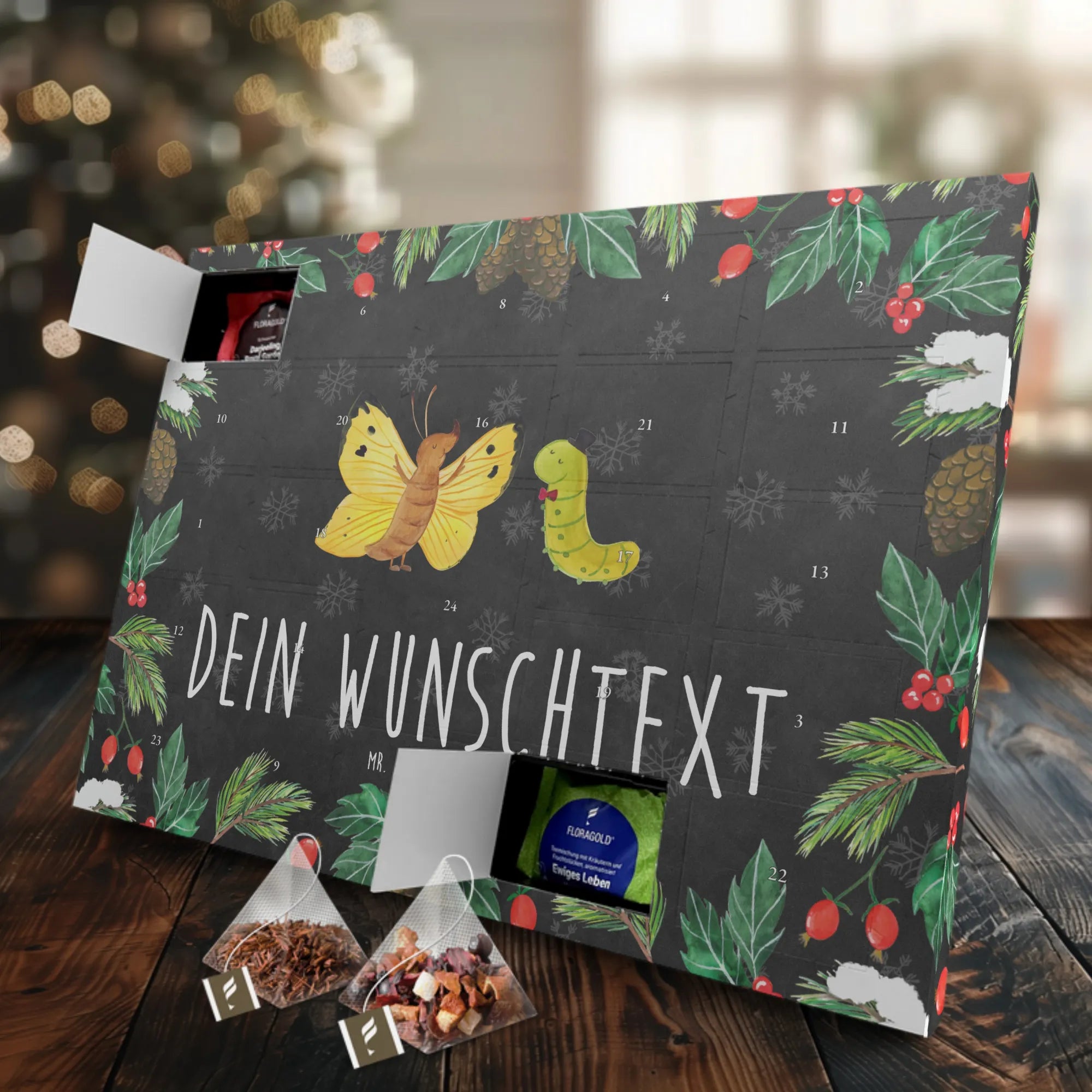 Personalisierter Tee Adventskalender Raupe Schmetterling - Eisblau