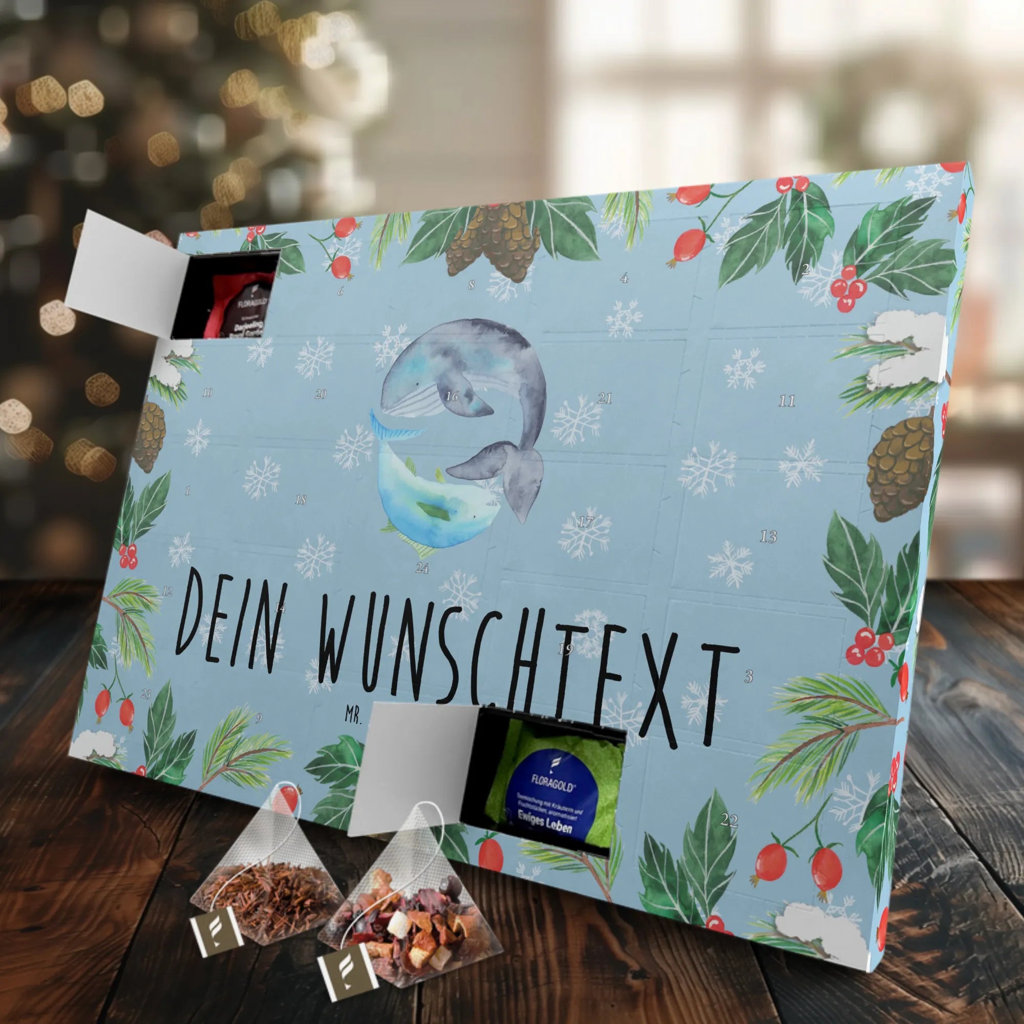 Der personalisierte Tee Adventskalender mit dem bezaubernden Motiv von Walfisch und Thunfisch ist das perfekte Geschenk für Tierfreunde und Tee-Liebhaber!