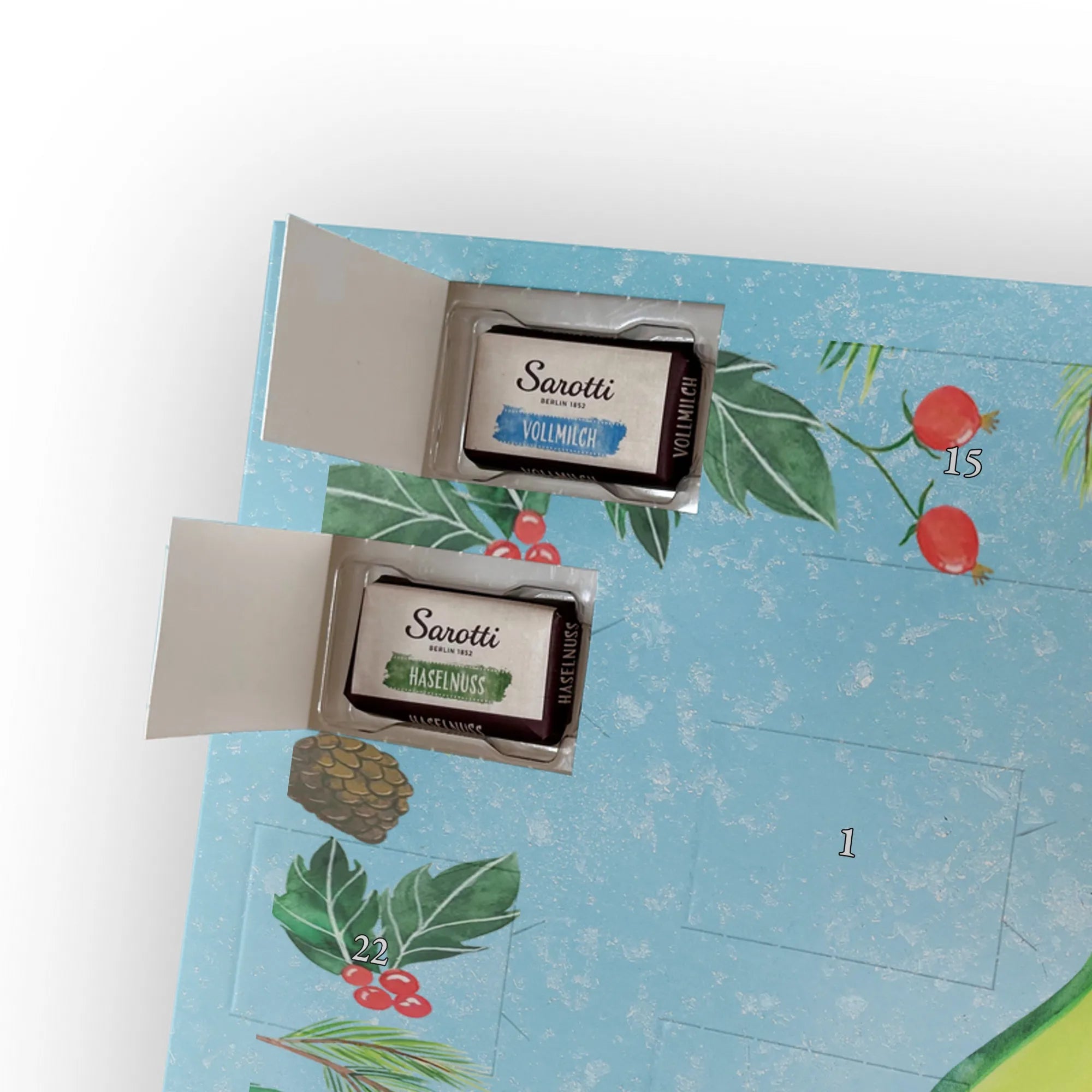 Hol dir den Adventszauber: Verwöhne dich oder deine Liebsten mit unserem liebevoll bedruckten Schoko Adventskalender – jetzt entdecken und Vorfreude schenken!